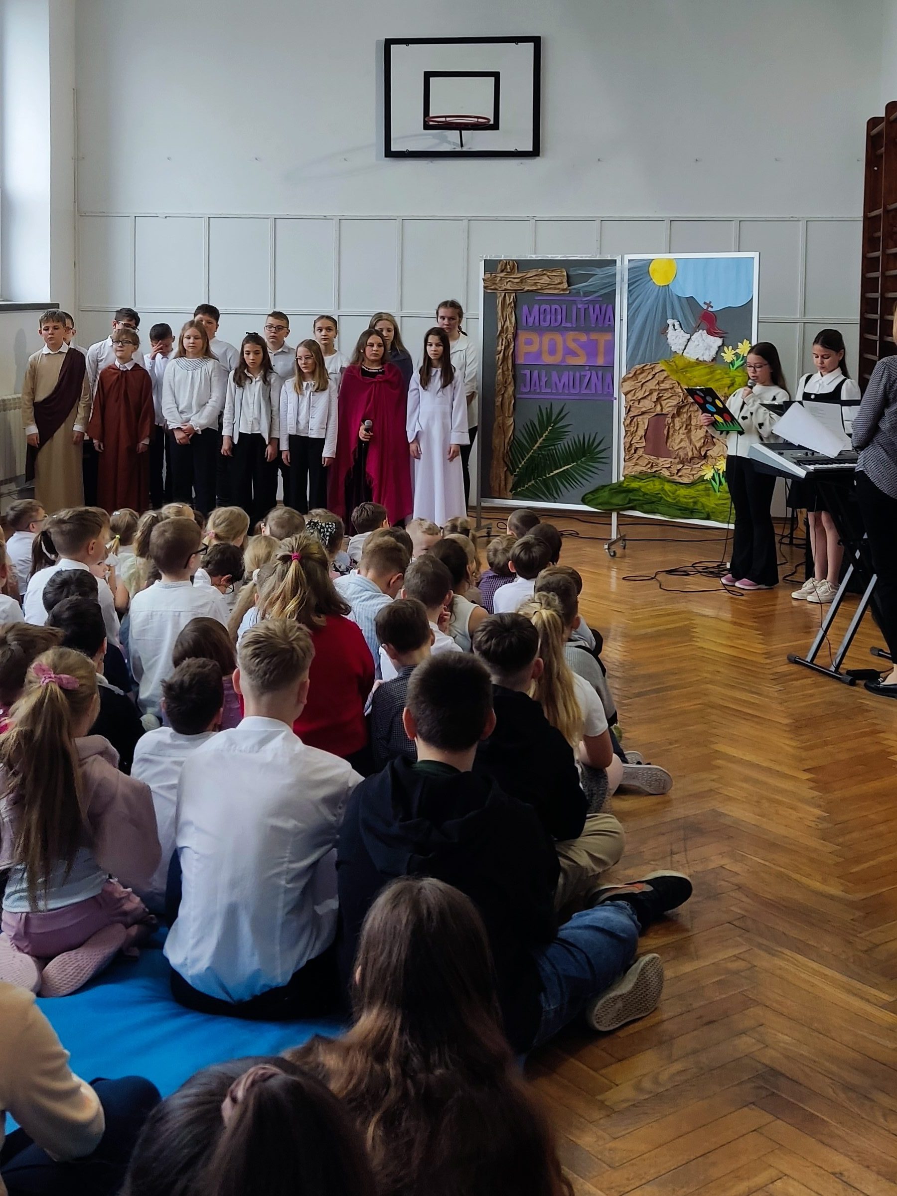 Młodzi artyści wprowadzili nas w tematykę nadchodzących świąt, przypominając o najważniejszych tradycjach i symbolach wielkanocnych. Występ pełen wzruszeń i radości był doskonałą okazją do wspólnej refleksji i integracji całej społeczności szkolnej.