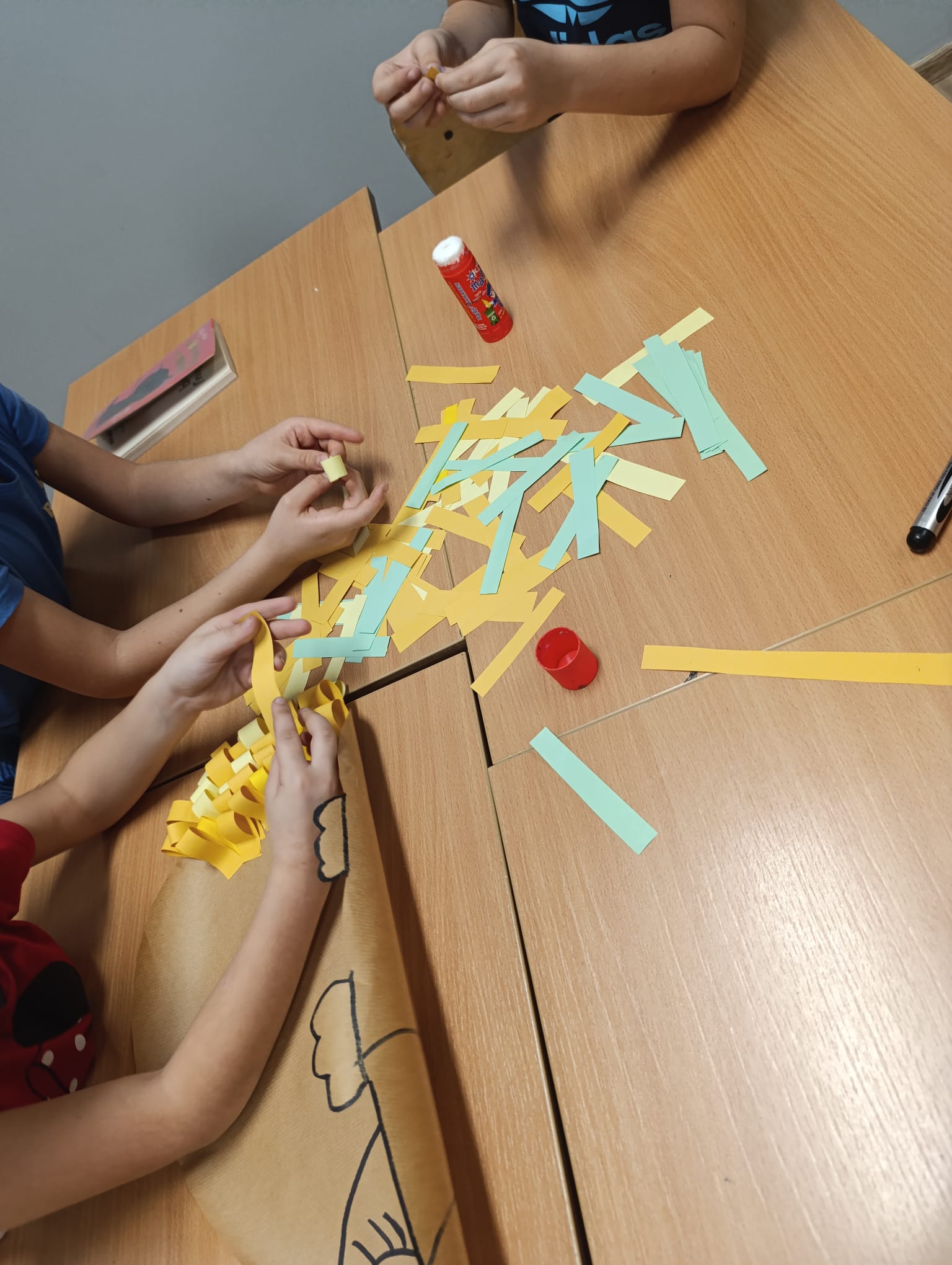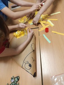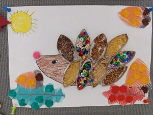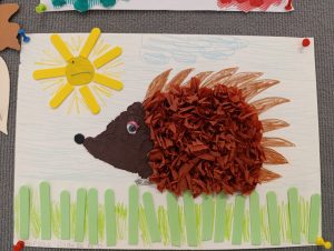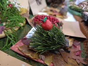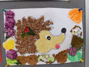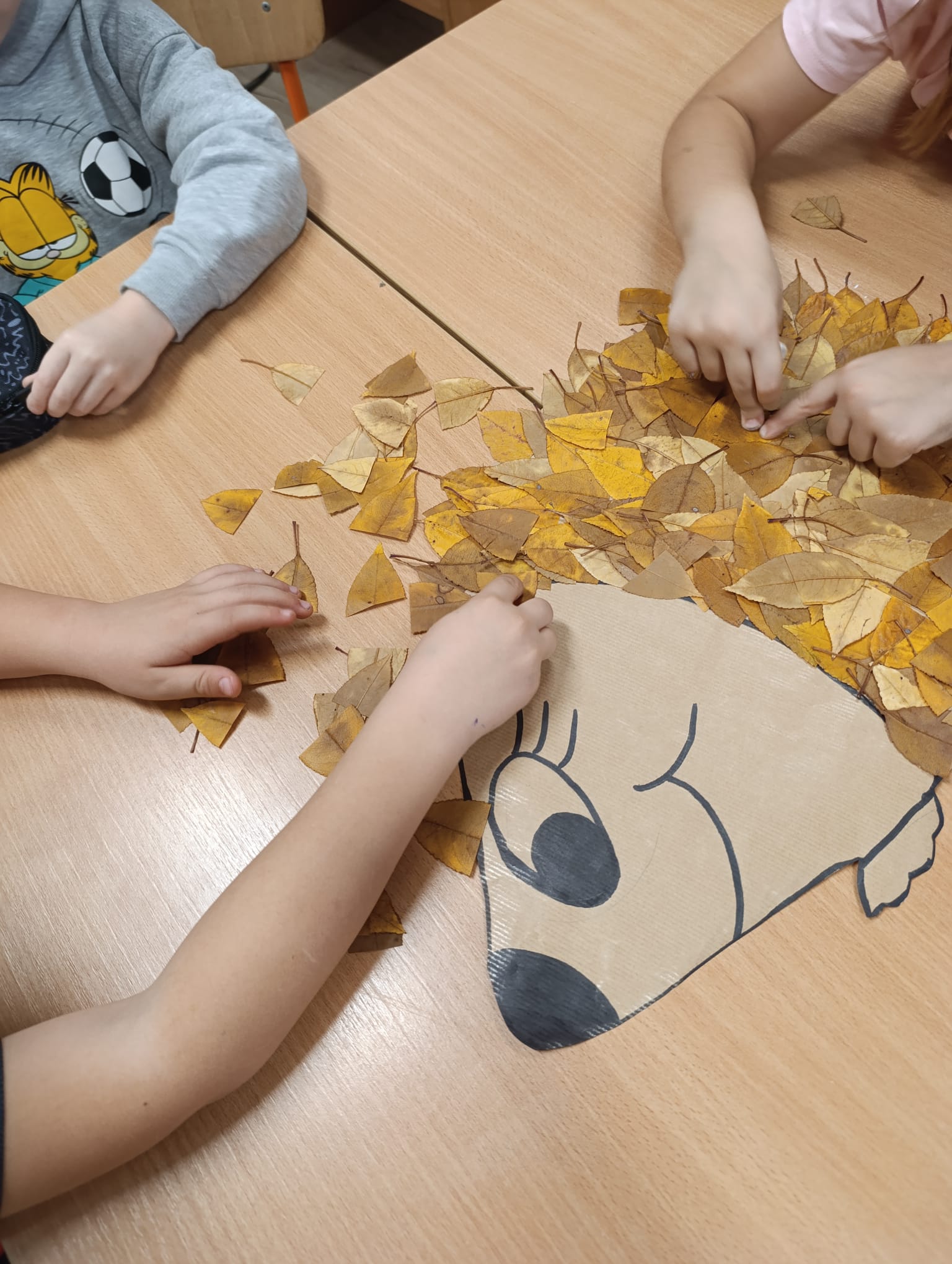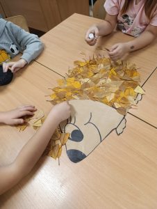 Nasze aktywne świetliczaki stworzyły piękne jeże z różnych materiałów (sznurek, bibuła, liście).