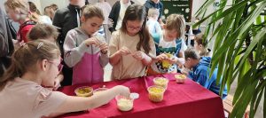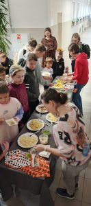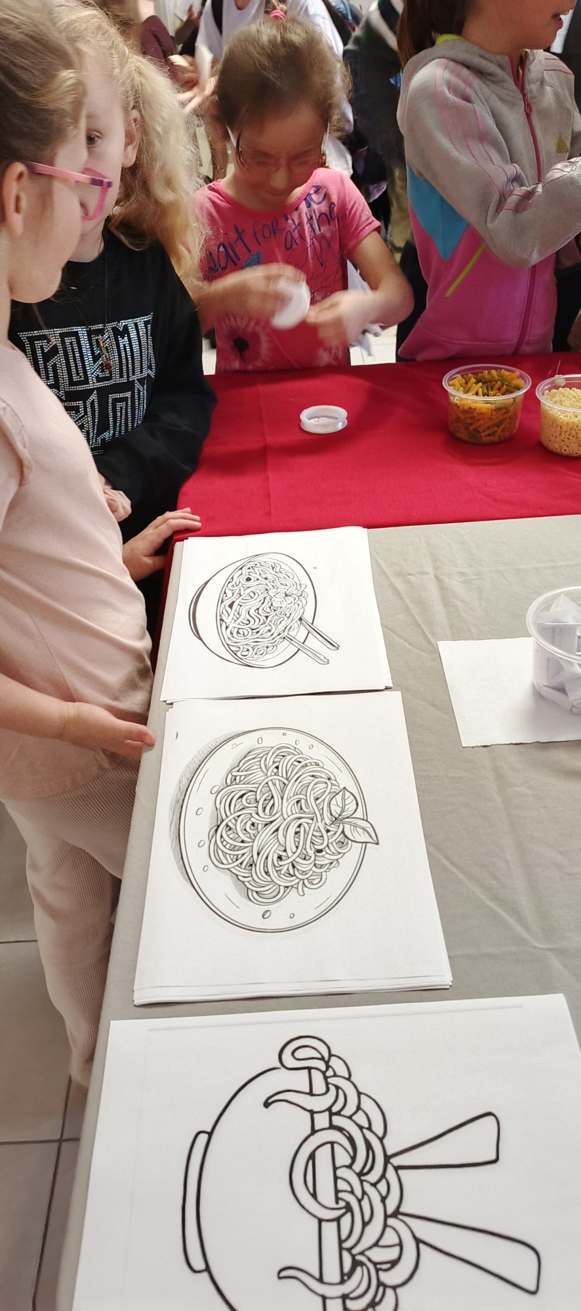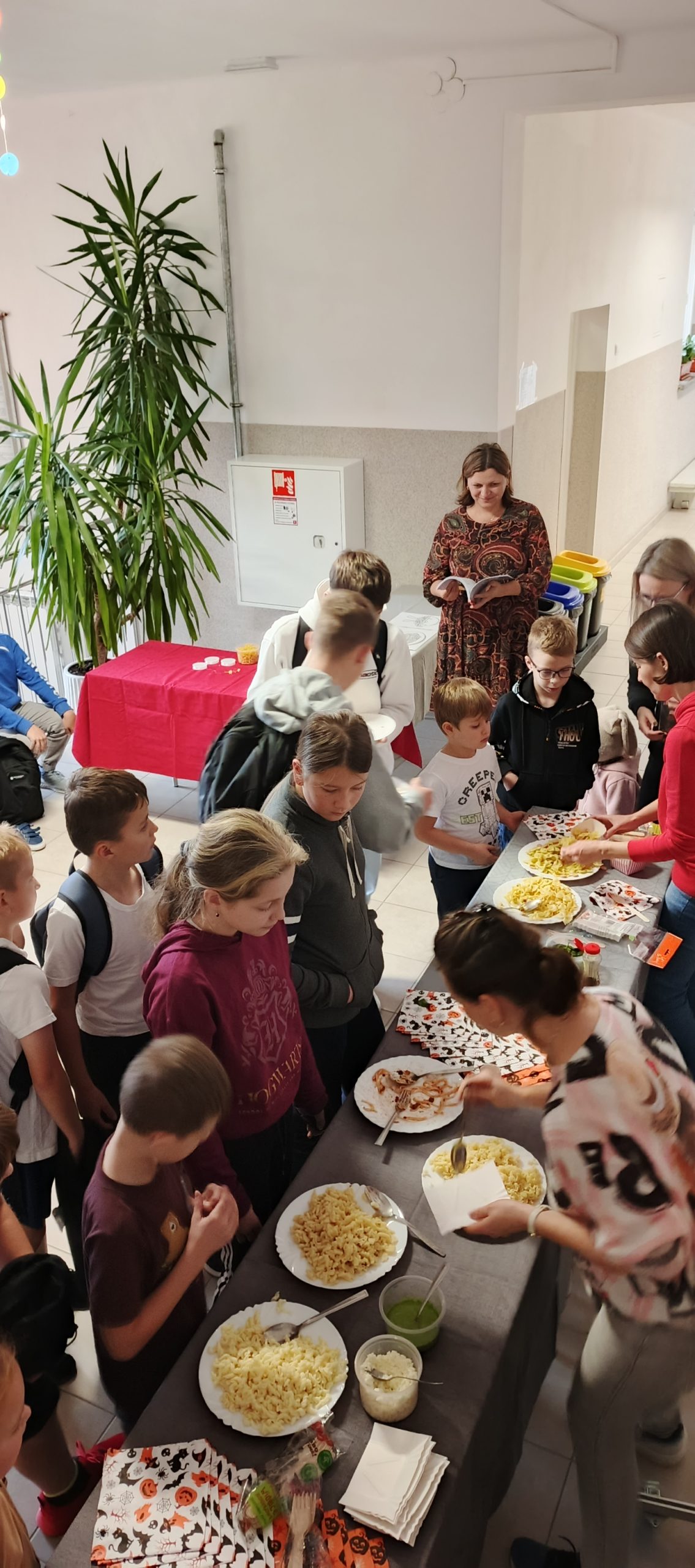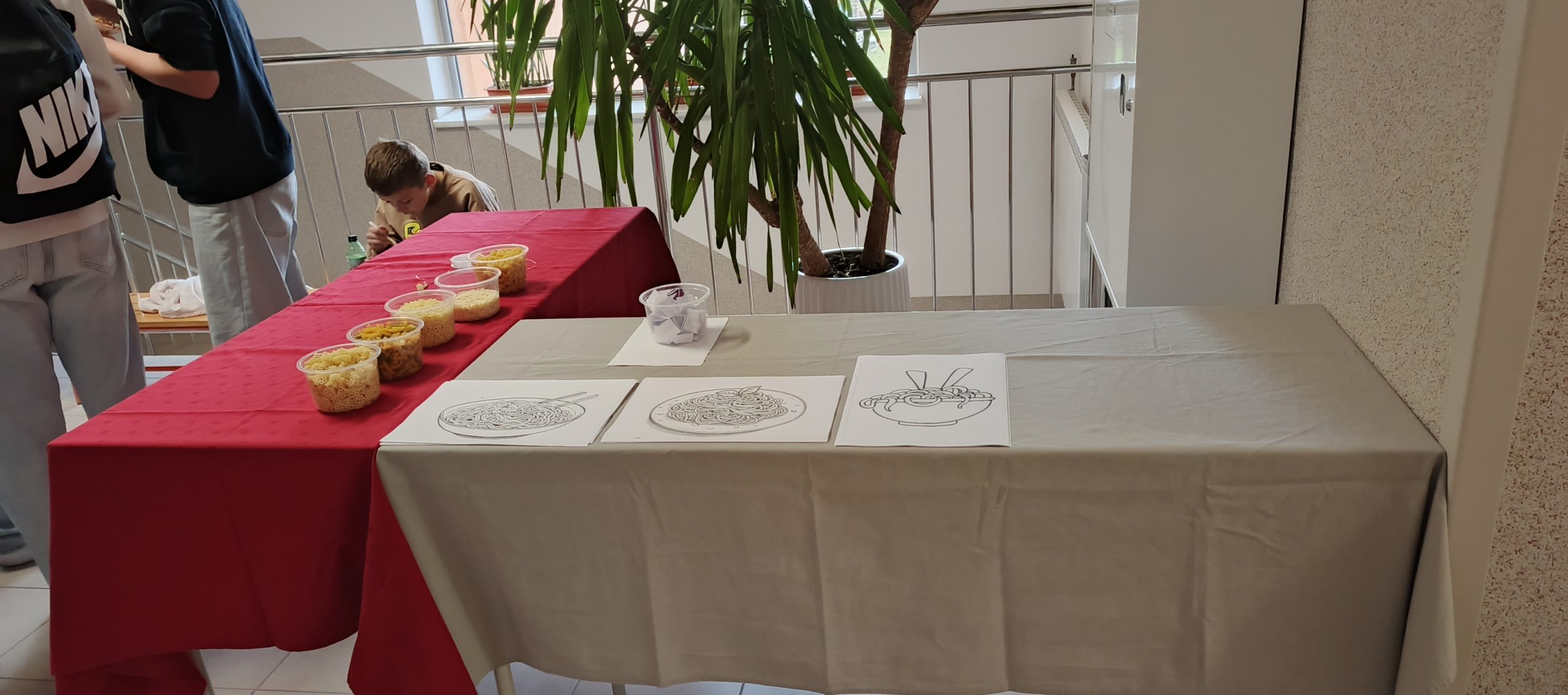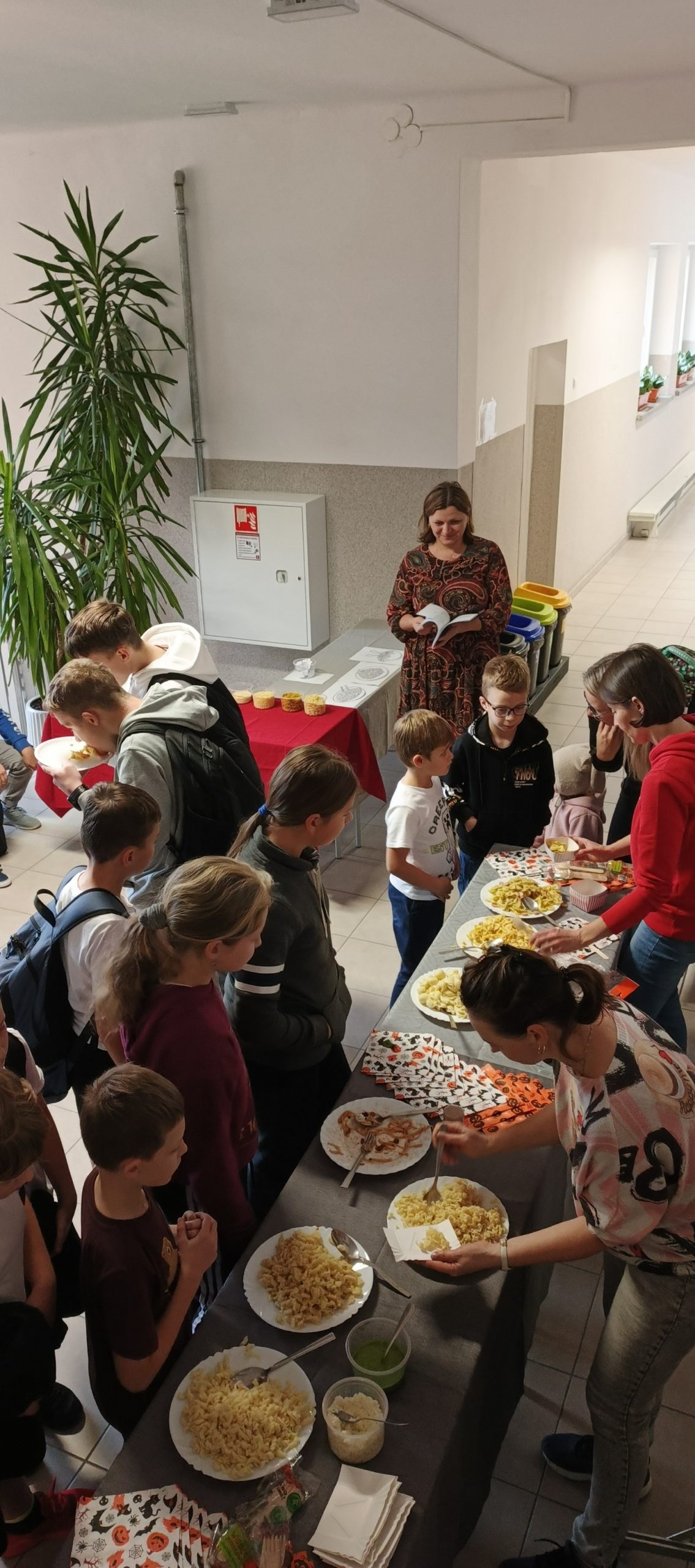 Samorząd Uczniowski postanowił zaprosić całą szkołę do celebrowania tego wyjątkowego święta. Podczas przerw uczniowie tłumnie zebrali się na górnym korytarzu, by degustować makaron o różnych kształtach oraz z różnymi dodatkami, zarówno na słodko, jak i wytrawnie. Chętni tworzyli biżuterię z makaronu oraz spędzali miło czas, kolorując tematyczne kolorowanki. Samorząd Uczniowski, wraz z opiekunami – panią Aleksandrą Falandysz oraz panią Beatą Pindarą, przygotował także specjalny quiz wiedzy o makaronie.