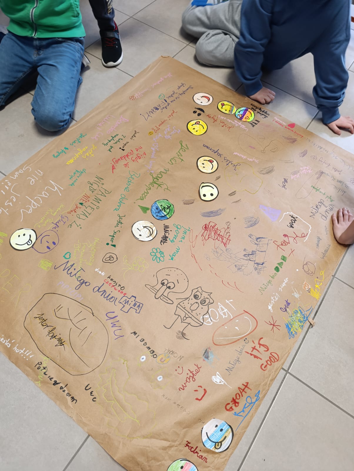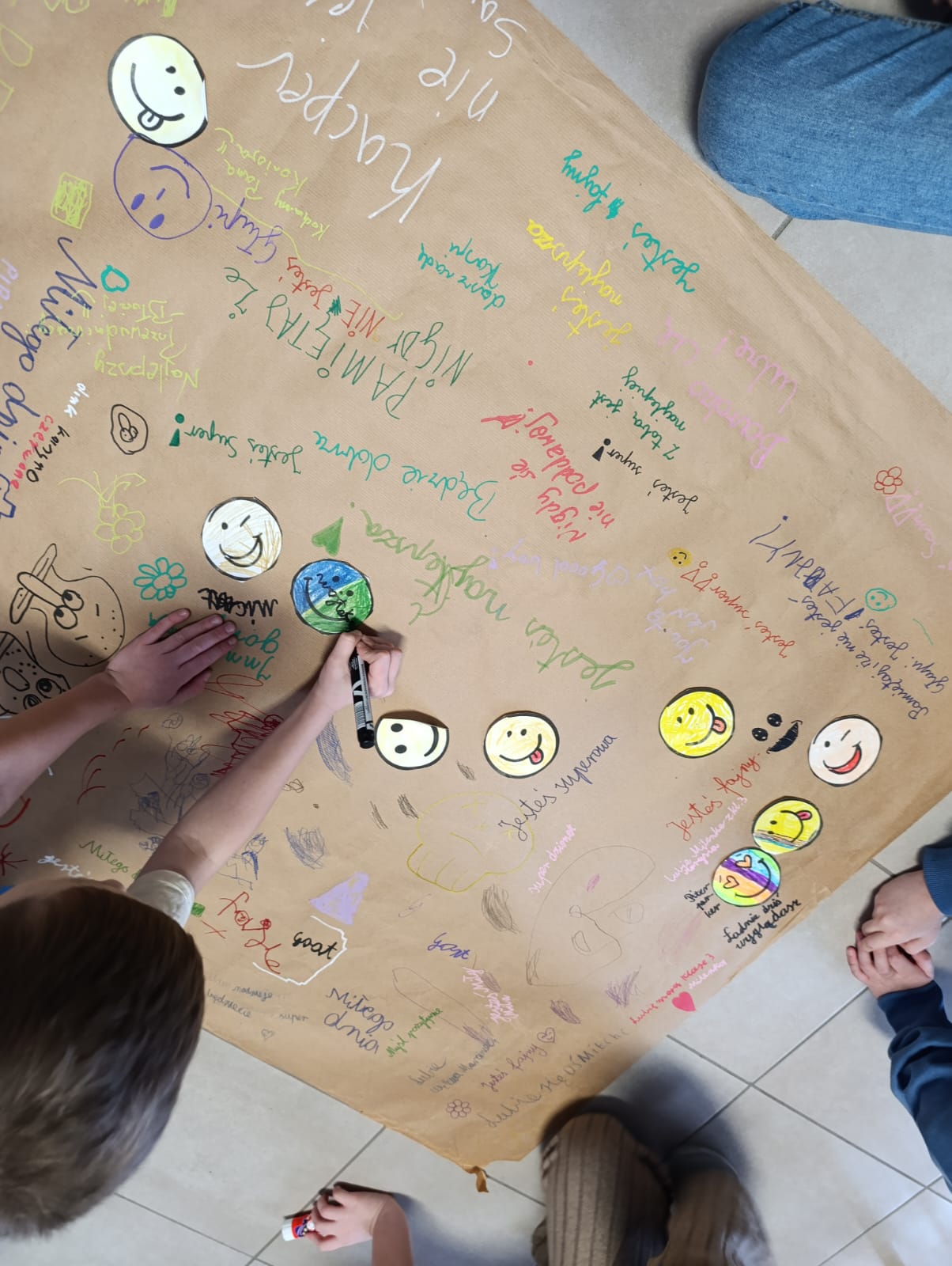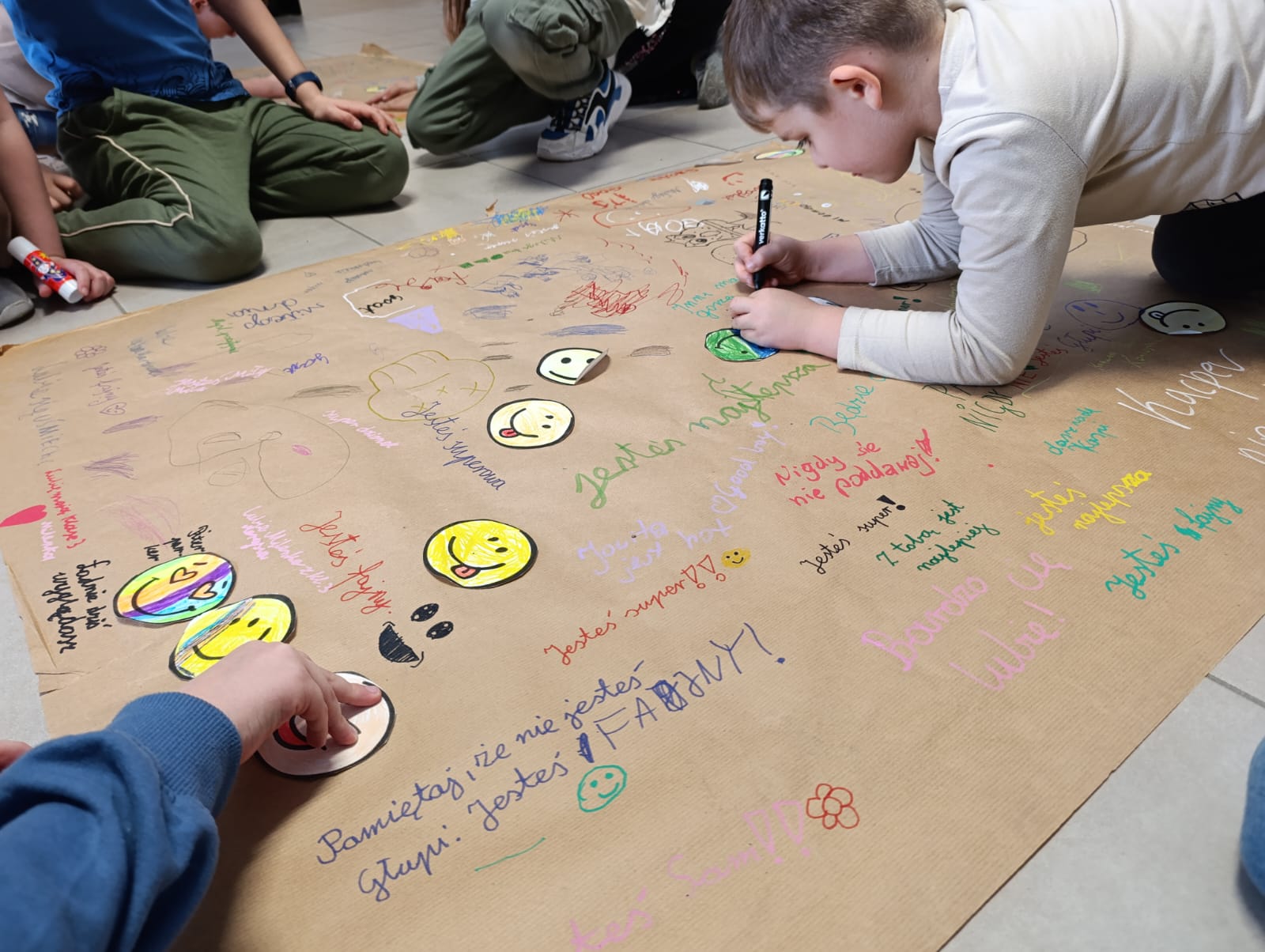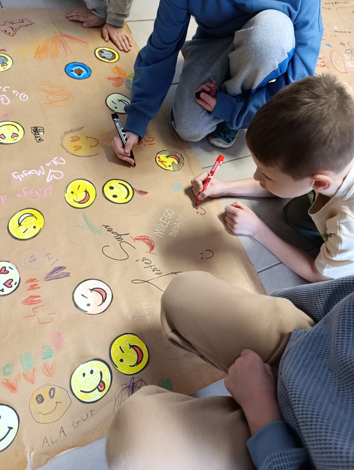 Nasza szkoła i przedszkole tradycyjnie włączyły się w obchody Dnia Życzliwości. W tym roku uczniowie tworzyli dywan życzliwości, ozdabiając go kolorowymi emotikonami, pozdrowieniami i miłymi słowami.