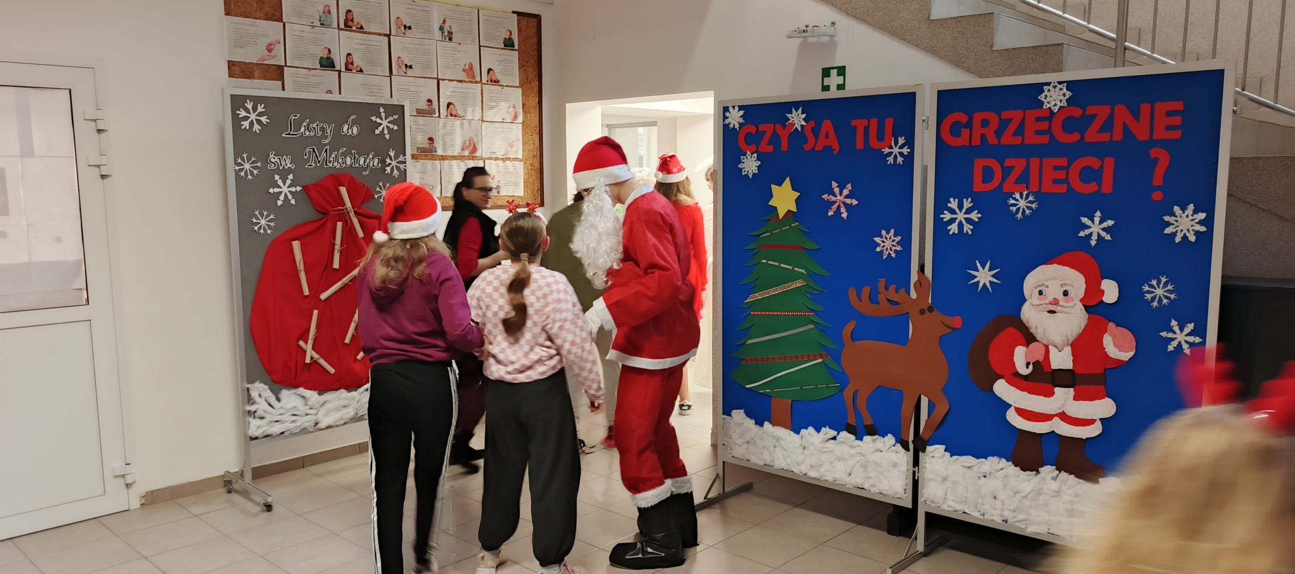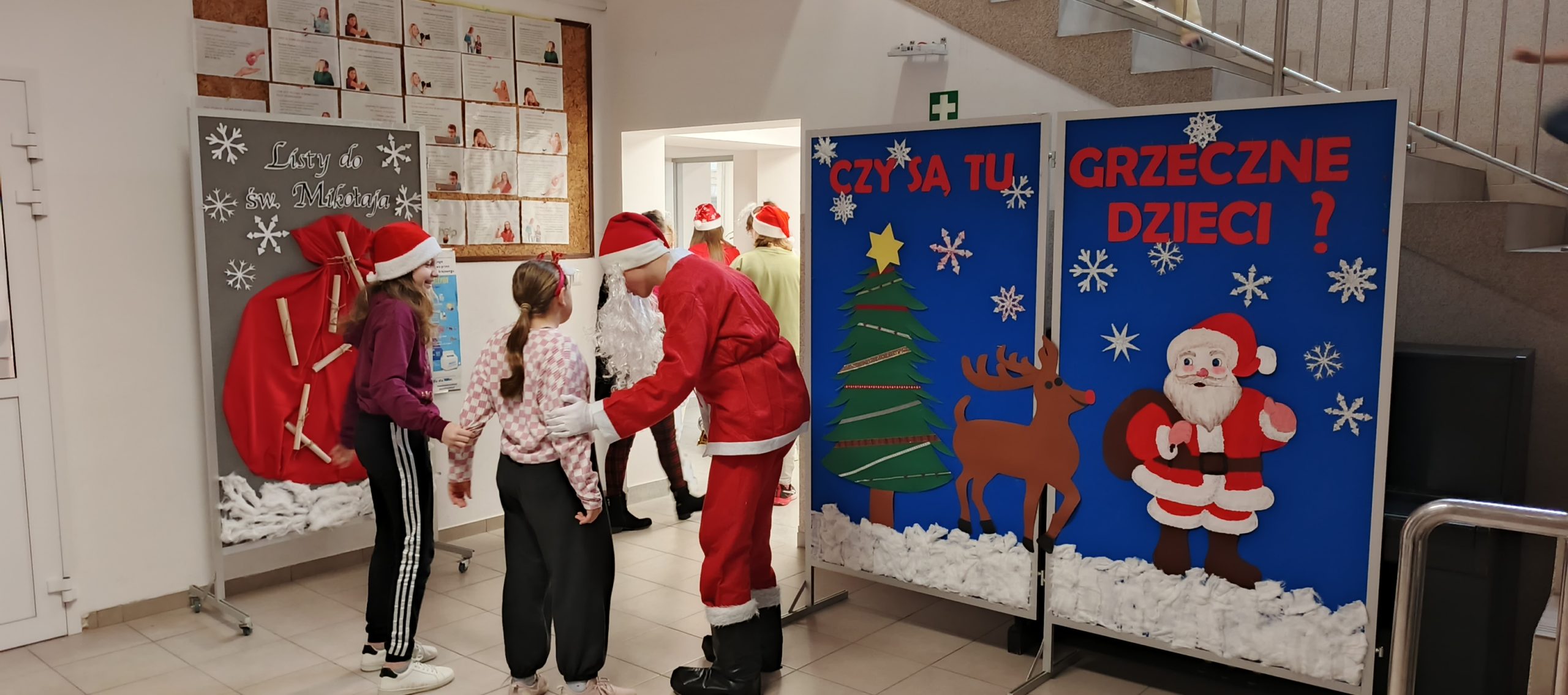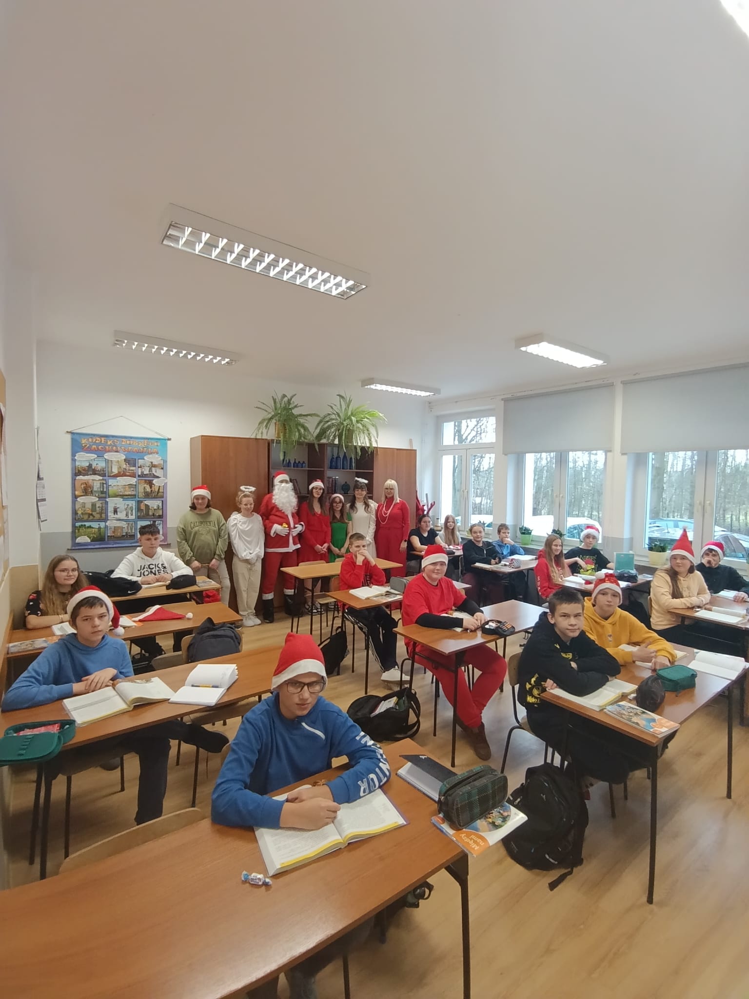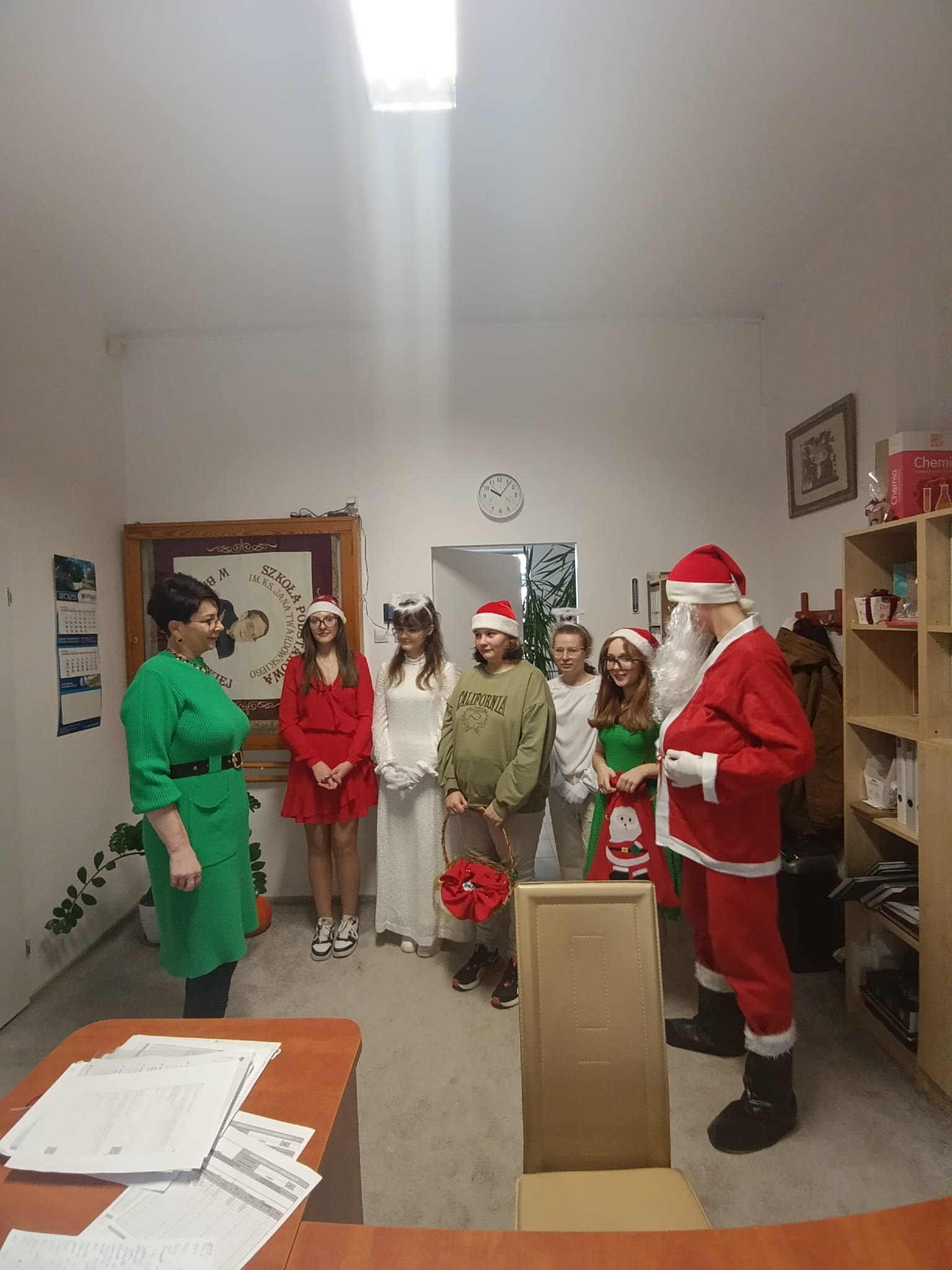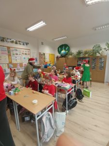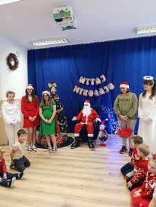 W tym roku już 5 grudnia w murach naszej szkoły zapanowała prawdziwie magiczna atmosfera dzięki wyjątkowej wizycie Świętego Mikołaja i jego wesołych pomocników! Goście częstowali wszystkich uczniów i pracowników pysznymi słodkościami. Mikołaj zachęcał również do wspólnego śpiewania świątecznych i mikołajkowych piosenek, a także z podziwem oglądał przygotowane przez uczniów energiczne występy taneczne i podziwiał mikołajkowe prace plastyczne uczniów oraz dekoracje.