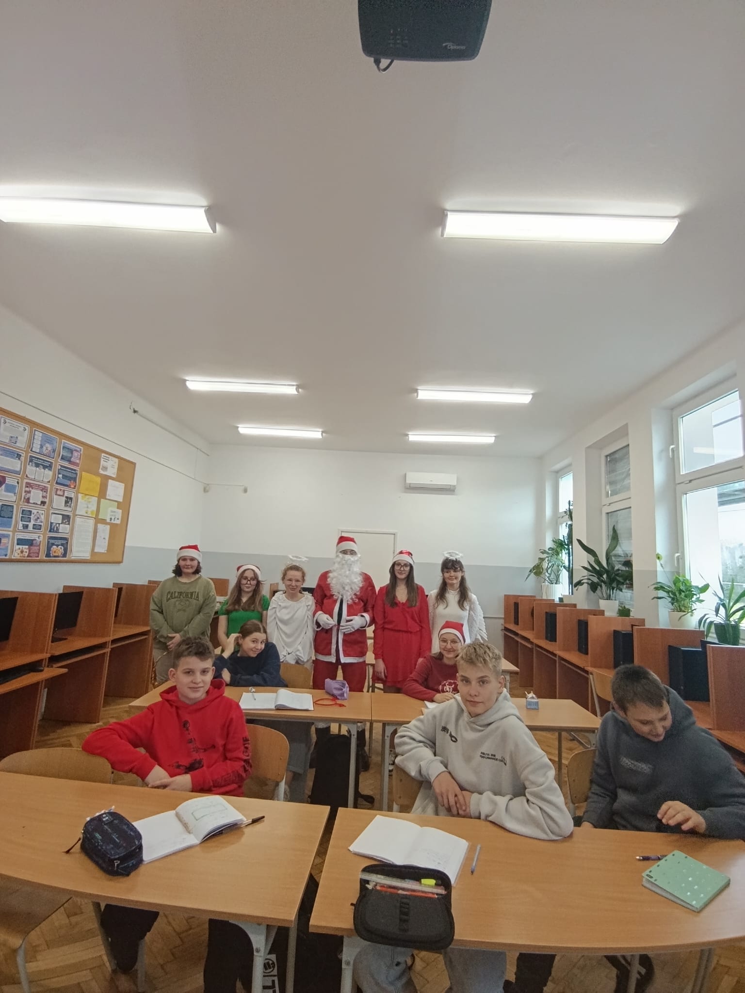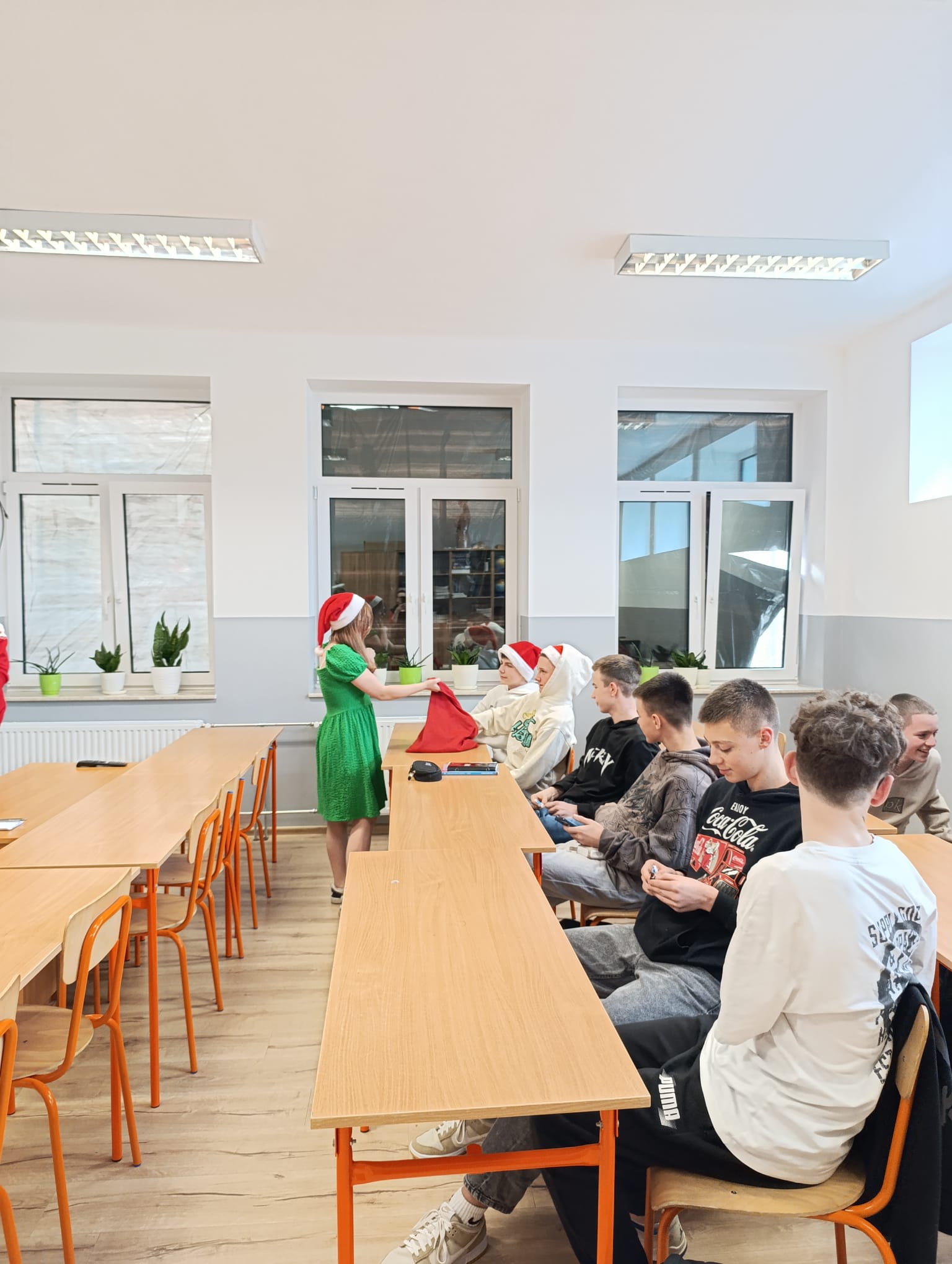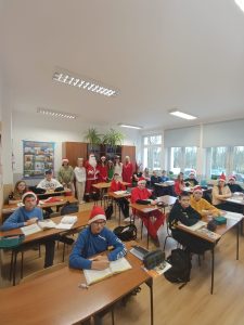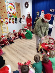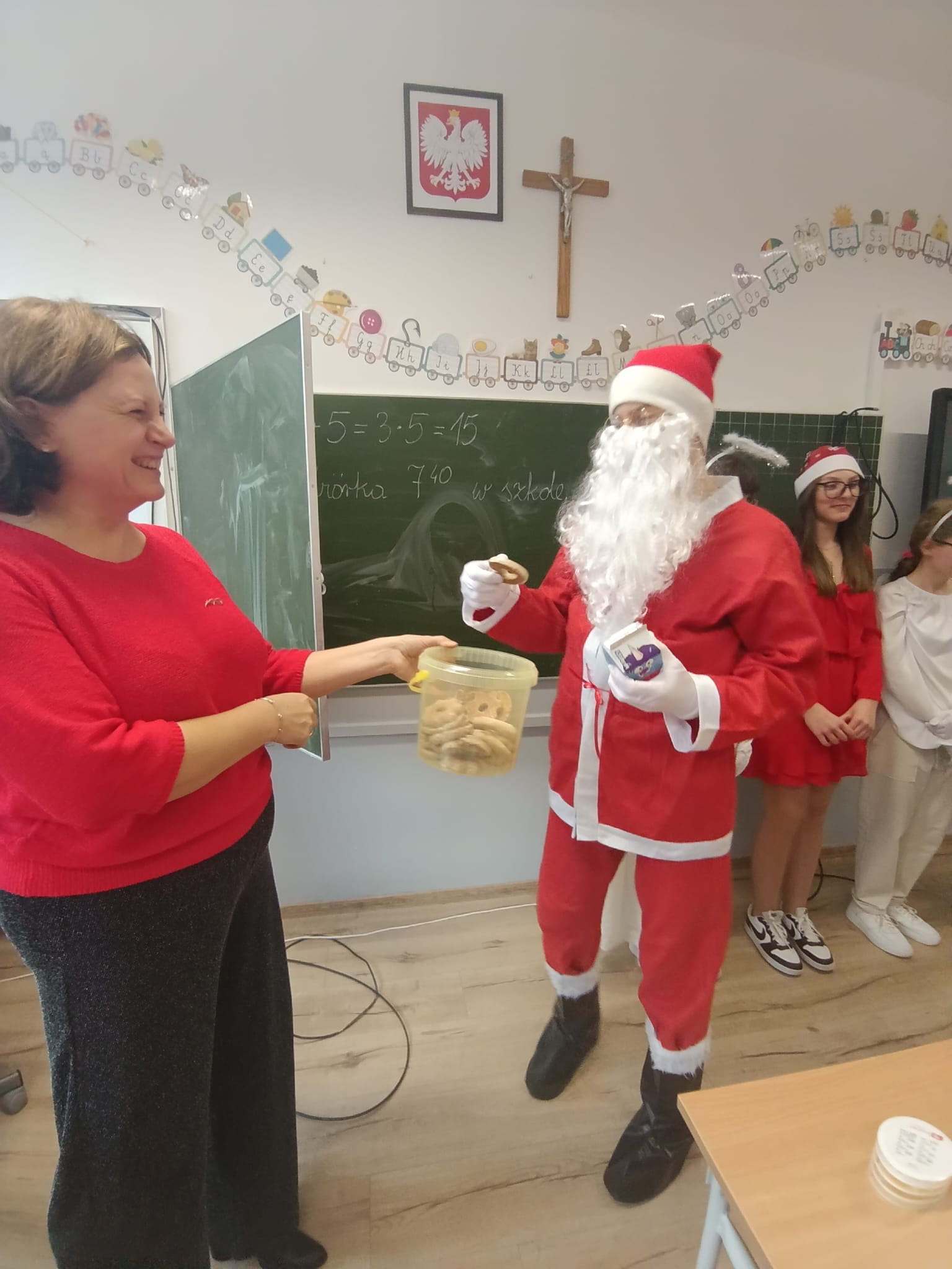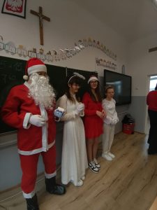 W tym roku już 5 grudnia w murach naszej szkoły zapanowała prawdziwie magiczna atmosfera dzięki wyjątkowej wizycie Świętego Mikołaja i jego wesołych pomocników! Goście częstowali wszystkich uczniów i pracowników pysznymi słodkościami. Mikołaj zachęcał również do wspólnego śpiewania świątecznych i mikołajkowych piosenek, a także z podziwem oglądał przygotowane przez uczniów energiczne występy taneczne i podziwiał mikołajkowe prace plastyczne uczniów oraz dekoracje.
