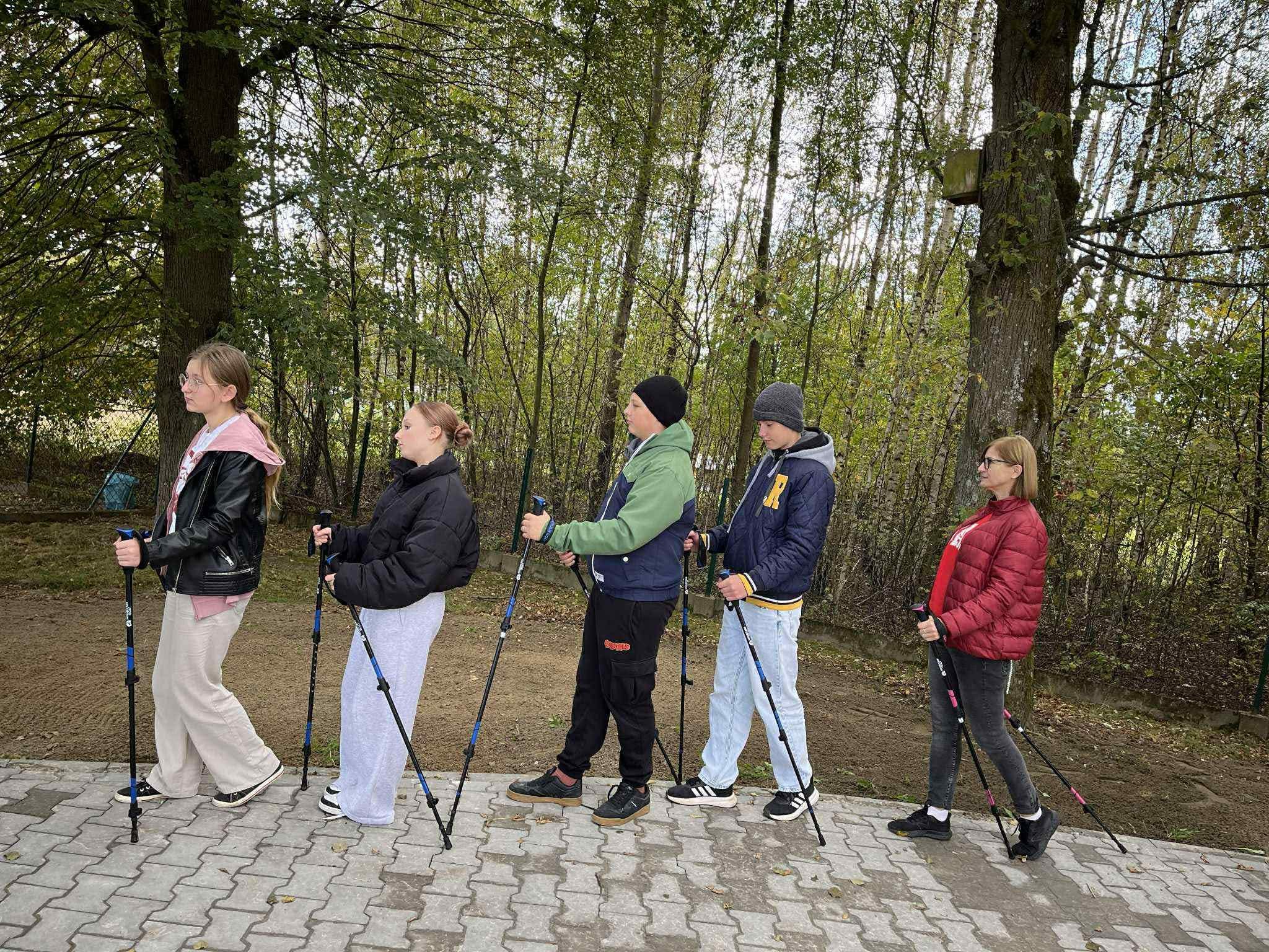 Nasz Uczniowski Klub Sportowy SKIP zainaugurował tegoroczną działalność wyprawą, szlifując technikę nordic walking.