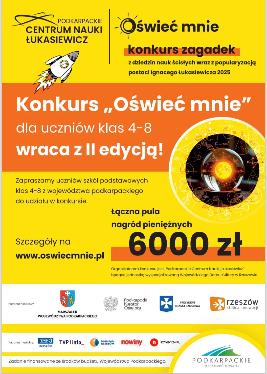 Aktualności szkolne 28 września, 2025 KONKURS: Oświeć mnie Szczegóły konkursu na stronie internetowej: https://www.oswiecmnie.pl/o-konkursie