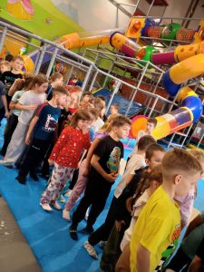 W „Fantazji” na uczniów czekało mnóstwo atrakcji, takich jak zjeżdżalnie, tory przeszkód, baseny z piłeczkami oraz konstrukcje do wspinania. Dzieci miały okazję wyszaleć się, spalić nadmiar energii i pobawić się wspólnie z rówieśnikami, co zacieśniło koleżeńskie więzi.