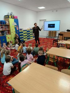Na zakończenie dzieci dowiedziały się jak działa biblioteka, otrzymały śliczne zakładki i zostały zachęcone do założenia własnych kart bibliotecznych. Czas na nowe, książkowe przygody!