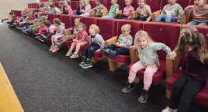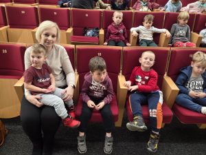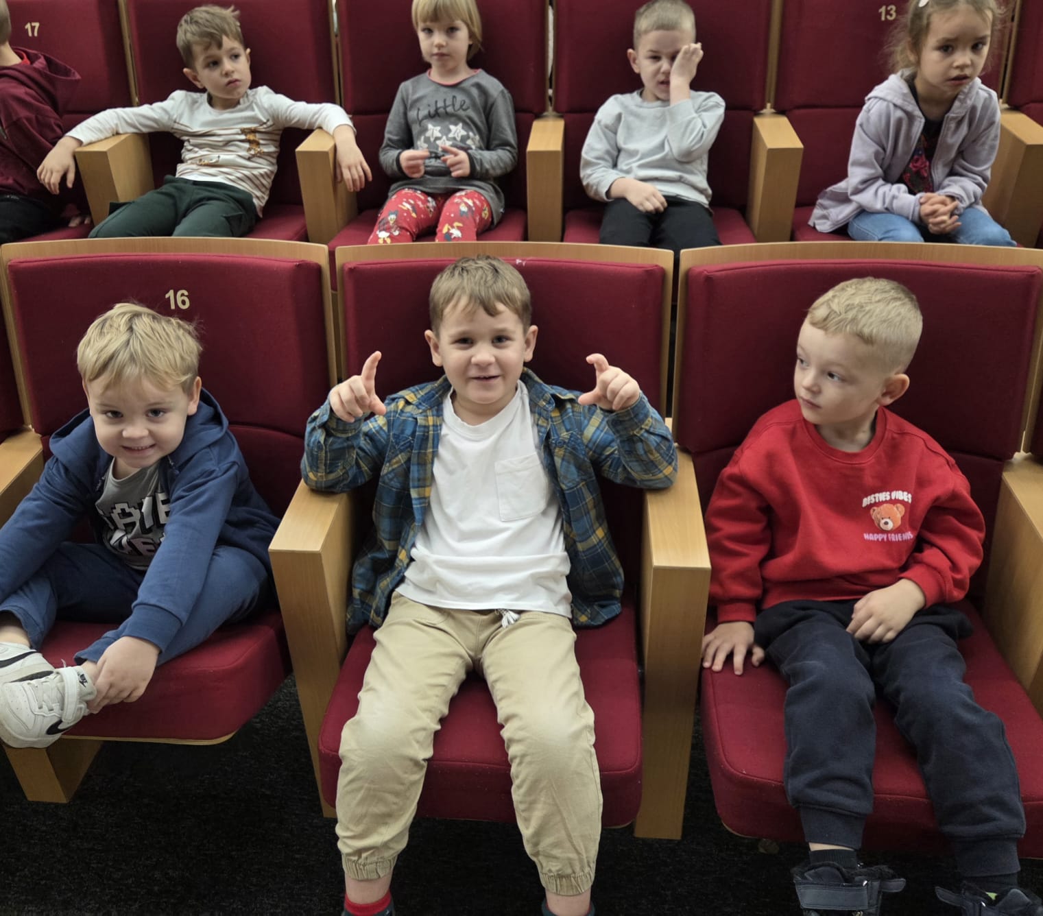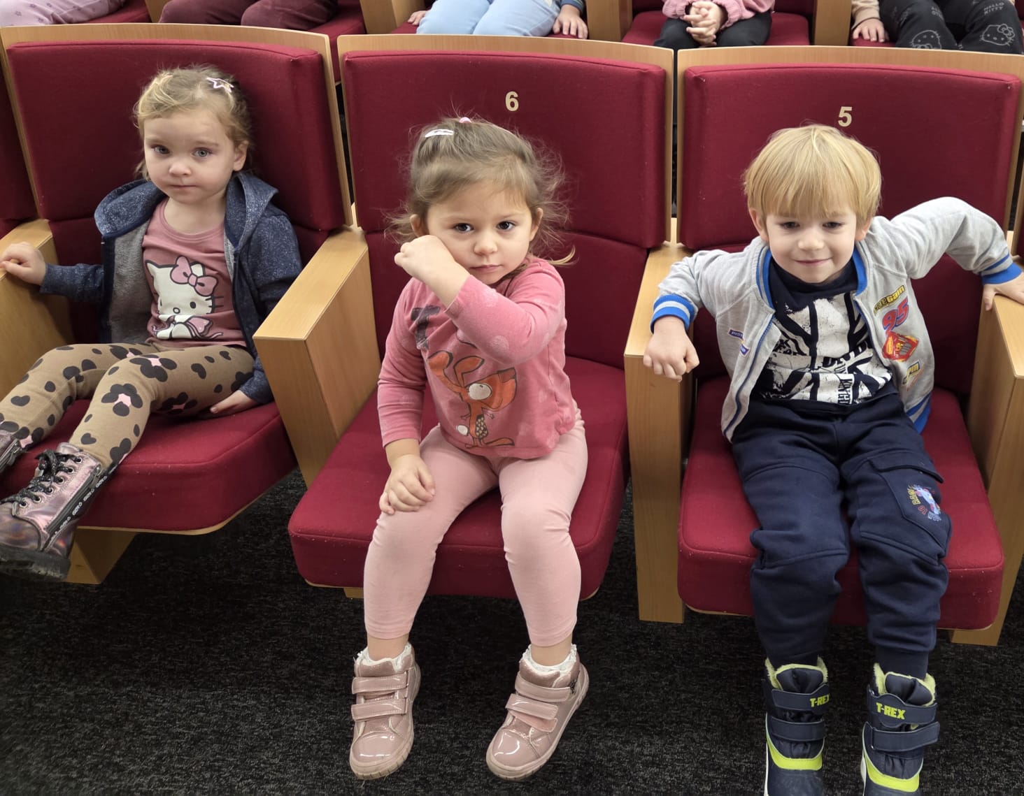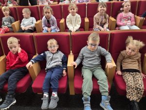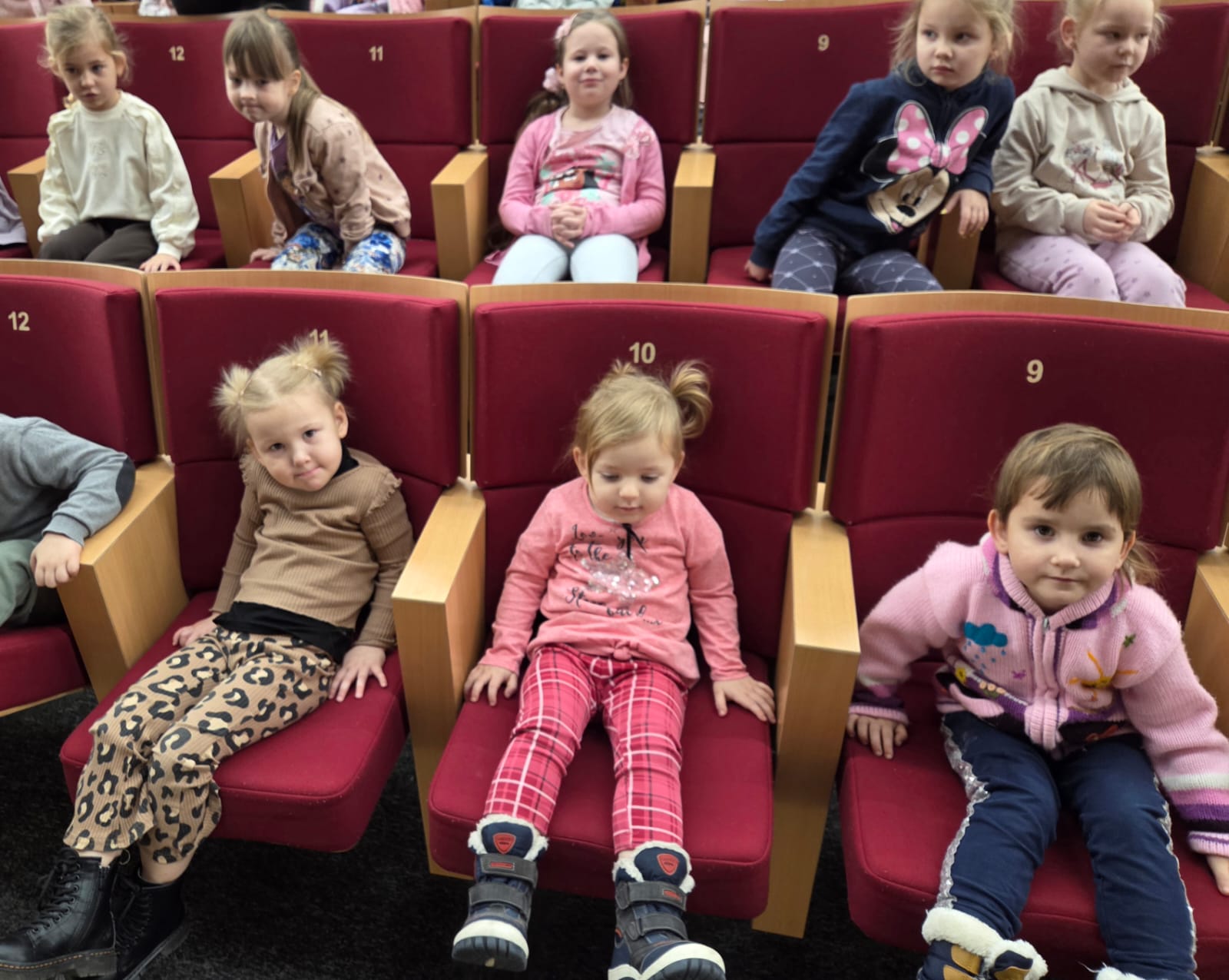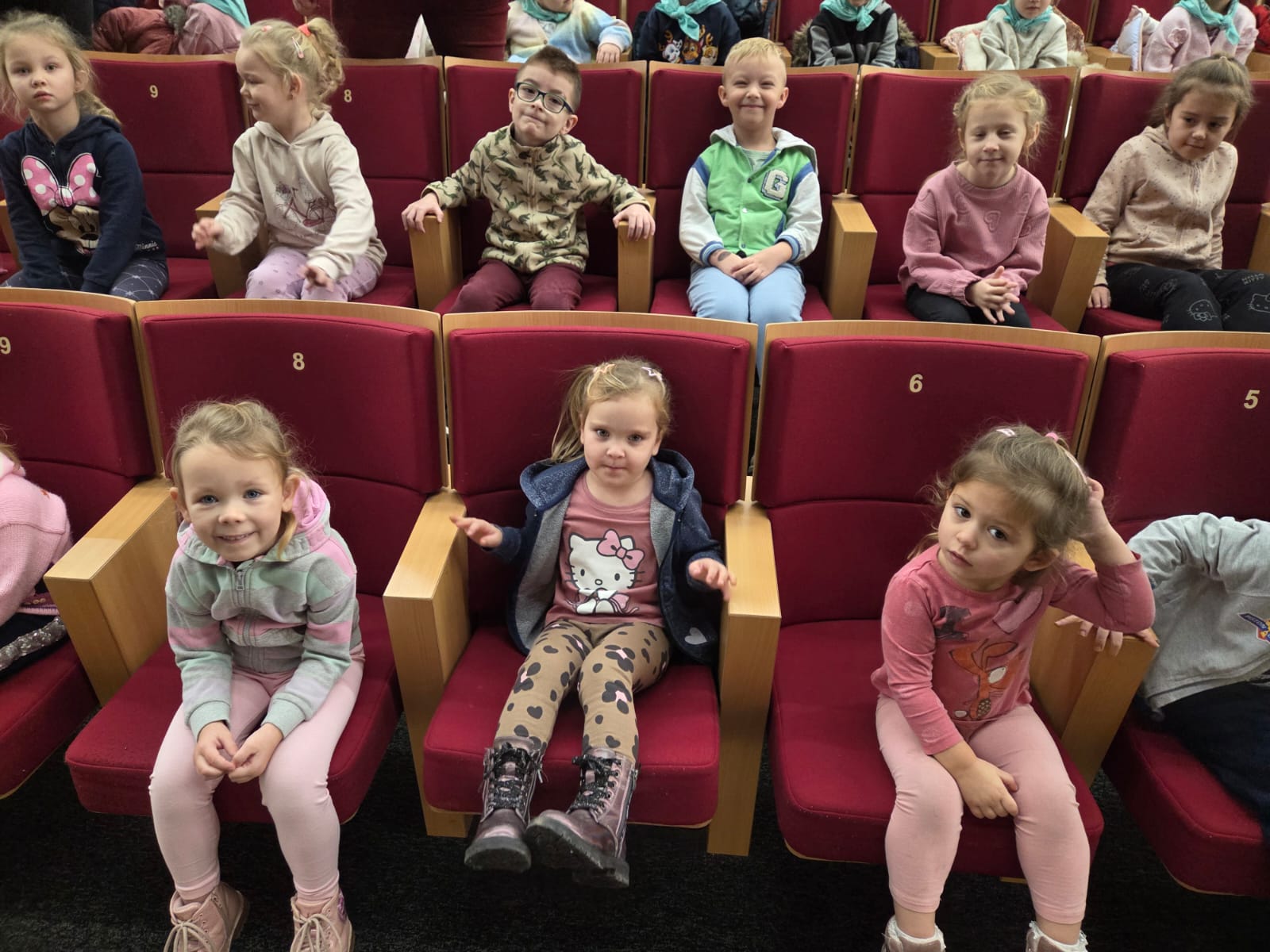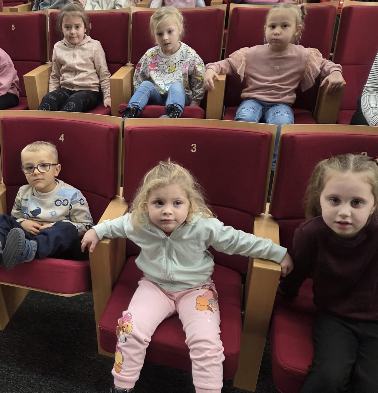 Dzisiaj Żabki i Sówki wybrały się na ekscytującą wycieczkę do Miejskiego Domu Kultury w Łańcucie, aby obejrzeć spektakl. Dzieci miały okazję zobaczyć przedstawienie pod tytułem „Przygody Baltazara i Smoka Wawelskiego”, przygotowane przez Narodowy Teatr Edukacji. Była to nowa, autorska wersja legendy o Smoku Wawelskim – pełna humoru, porywającej muzyki i emocjonujących przygód. Dzieci z zapartym tchem śledziły niebezpieczną wyprawę Smoka i jego przyjaciół, którzy ruszyli, by ratować krainę przed tajemniczymi zagrożeniami.