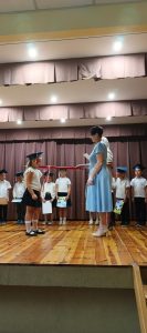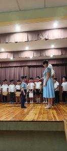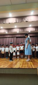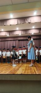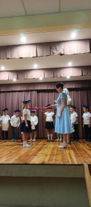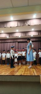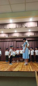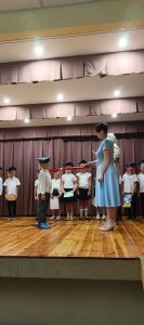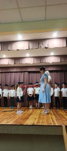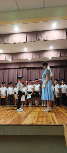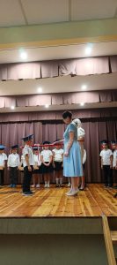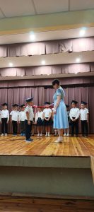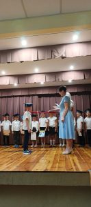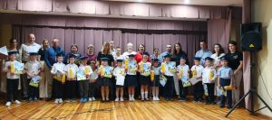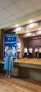 W GOK-u odbyła się oficjalna część akademii. Głównym punktem uroczystości było pasowanie na pierwszoklasistów. Najmłodsi uczniowie w towarzystwie wychowawczyni – pani Katarzyny Rogowskiej, z bijącym sercem, złożyli uroczyste ślubowanie. Pani Dyrektor dokonała symbolicznego pasowania, a nowi członkowie naszej szkolnej rodziny z dumą otrzymali pamiątkowe dyplomy i upominki.