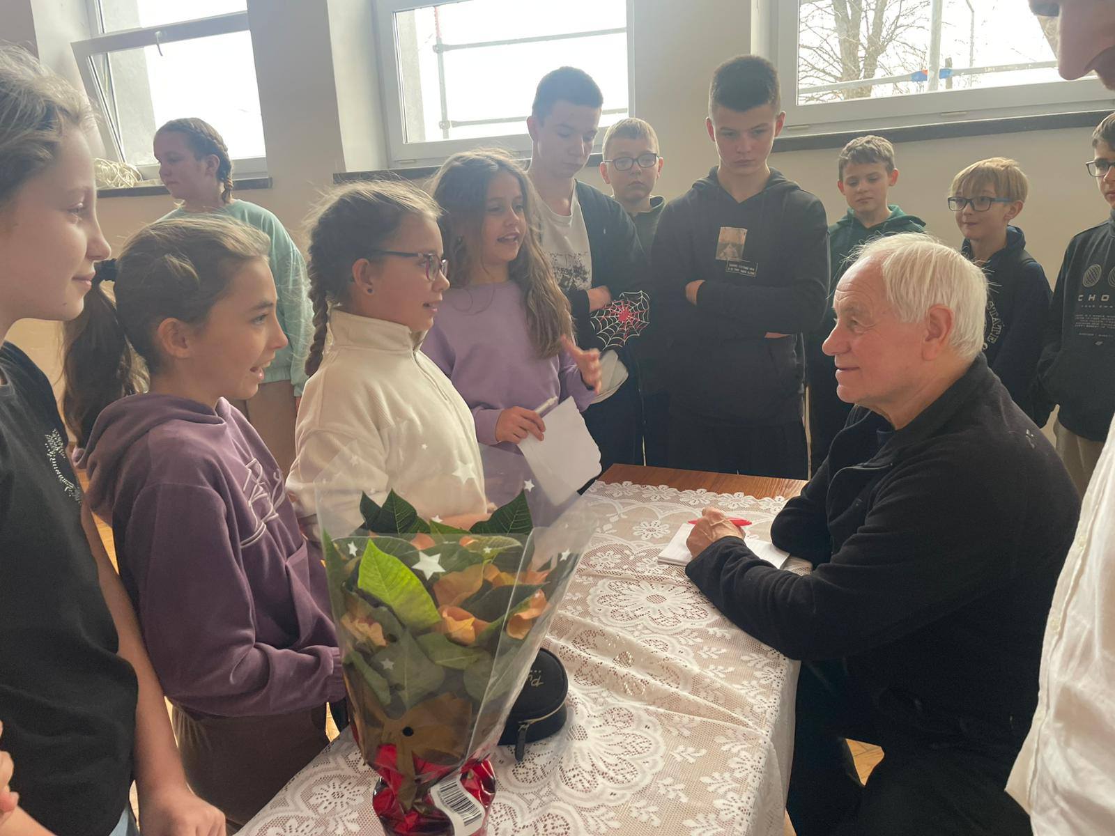 Historia jego życia, przeciwności, z którymi się mierzył oraz siły i determinacji z jaką biegł przez życie była dla wszystkich inspirująca i ubogacająca. Nie zabrakło czasu na rozmowy i pamiątkowe zdjęcia. Spotkanie zostało zorganizowane przez pana Sebastiana Dobosza.