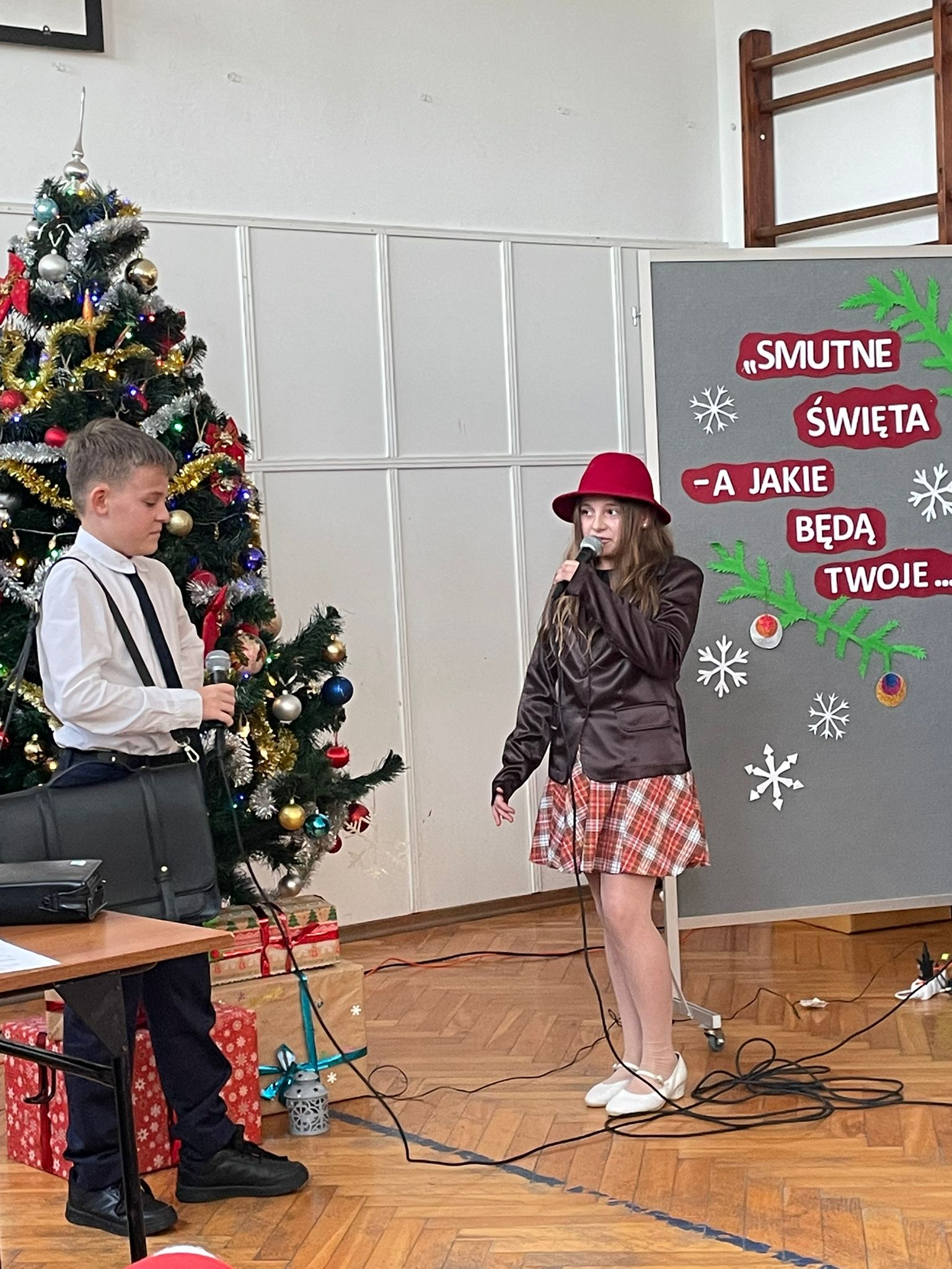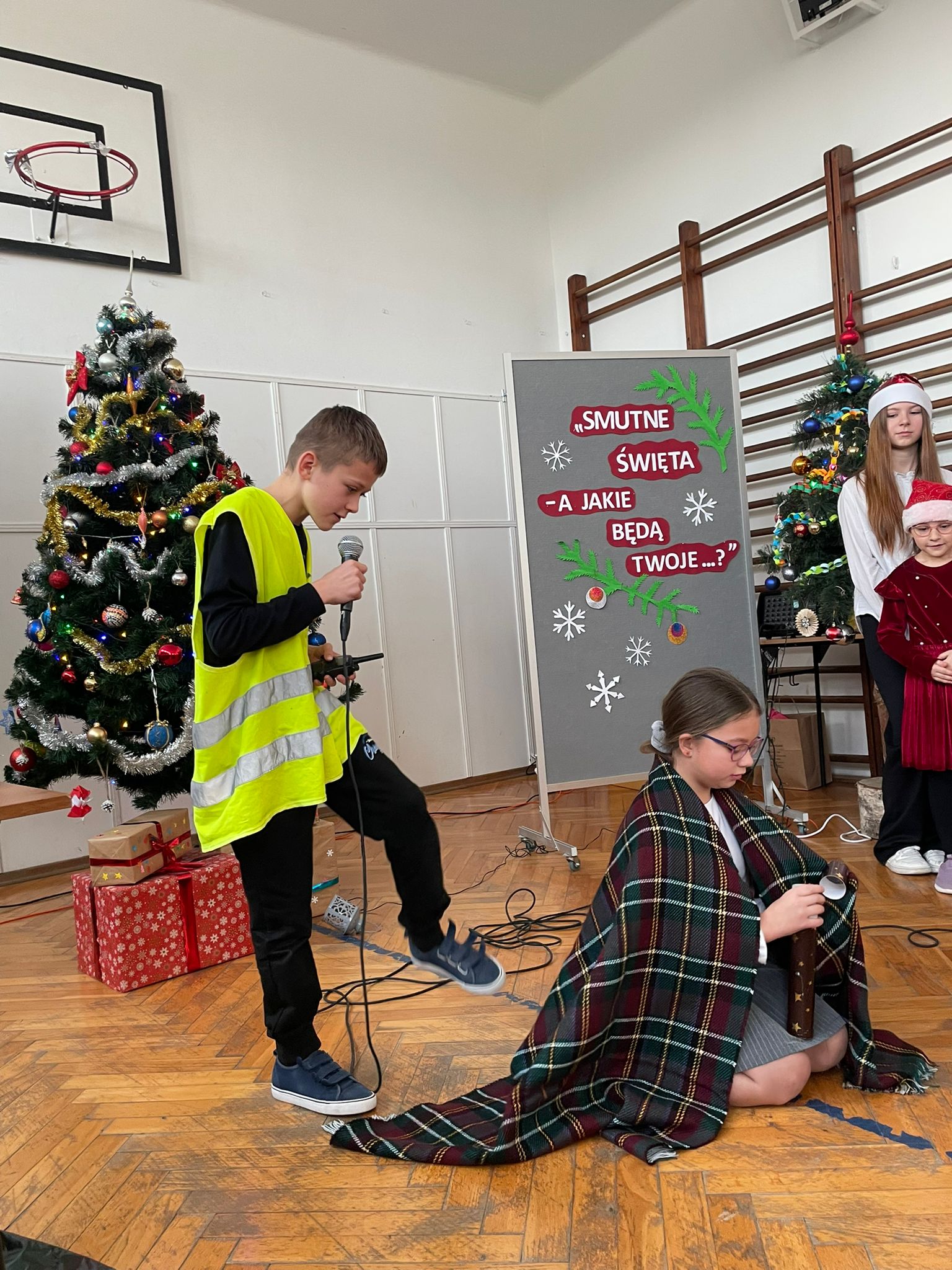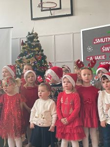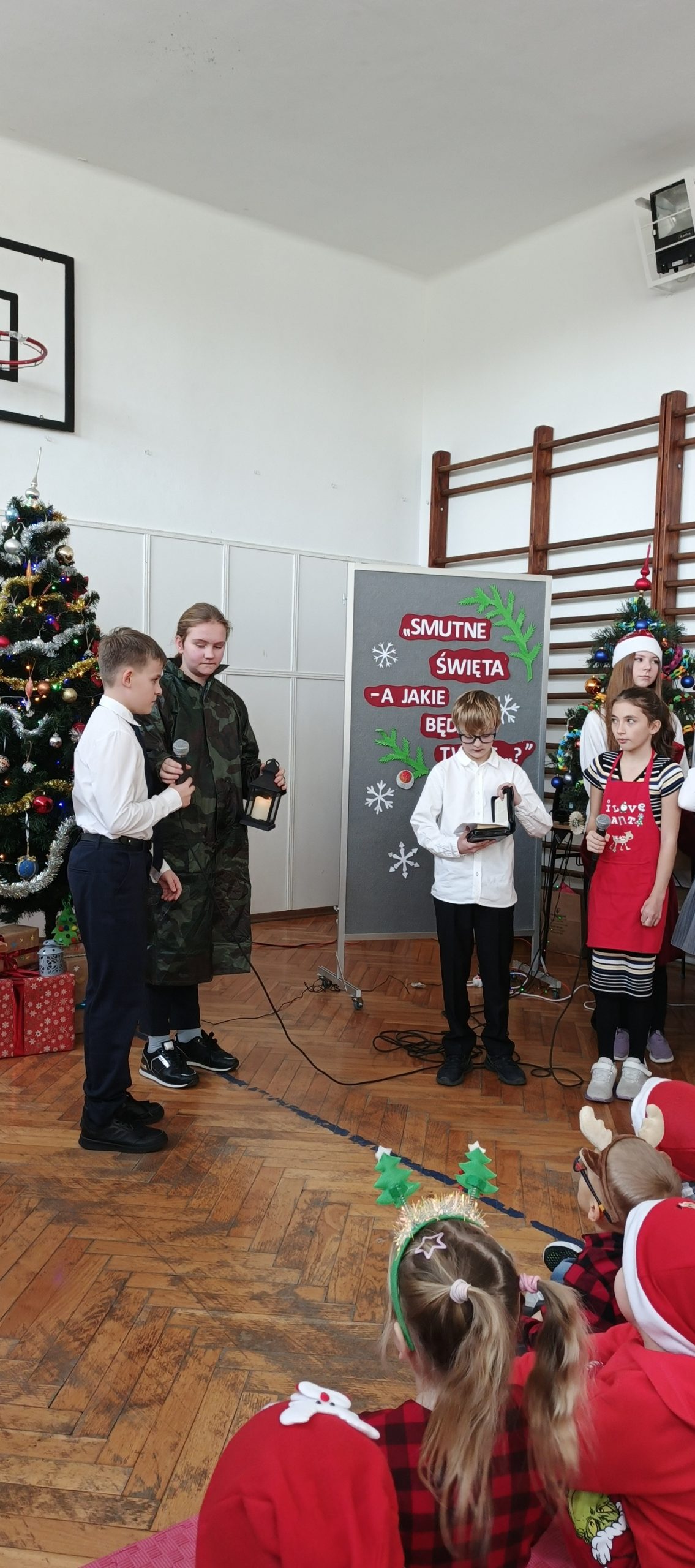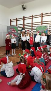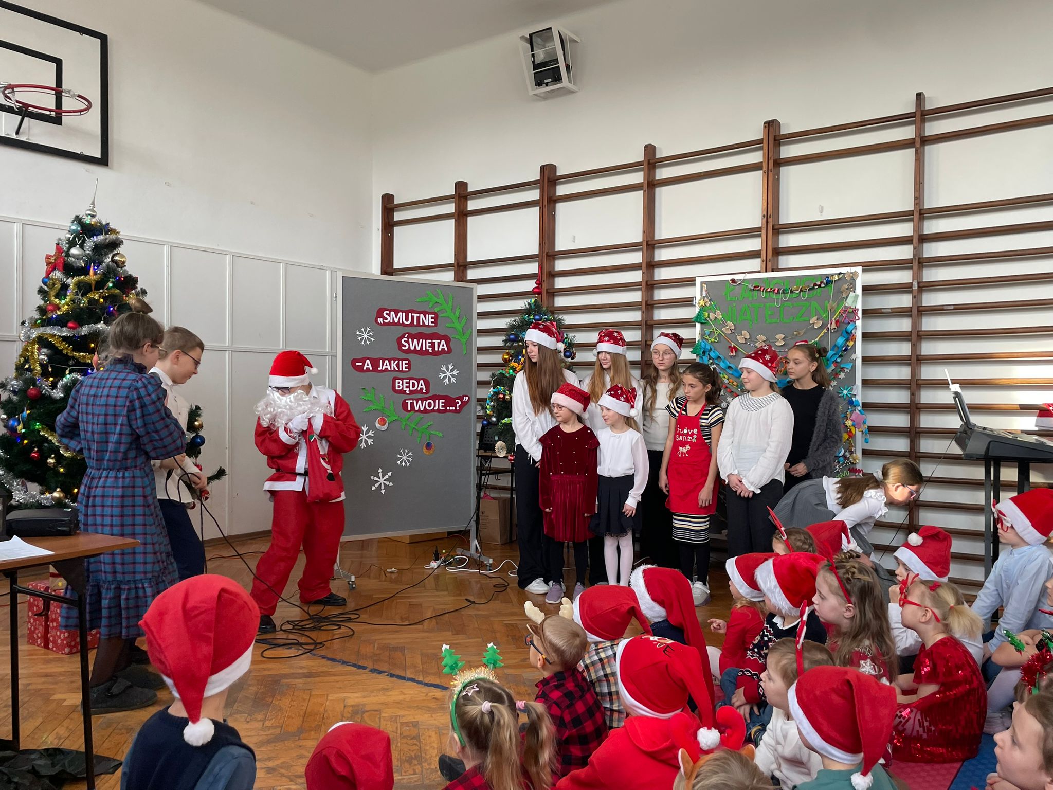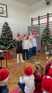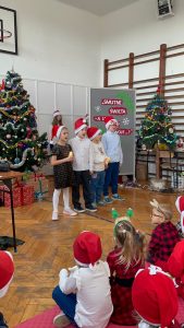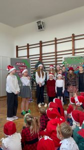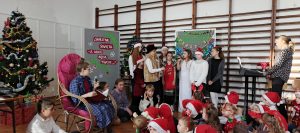 Spektakl pt. „Smutne święta” w wykonaniu piątoklasistów wprawił wszystkich w refleksyjny nastrój. Mieliśmy okazję uzmysłowić sobie sens bożonarodzeniowego świętowania oraz znaczenie życzliwości, dobroci i wspólnoty. Występ uświetniły piosenki bożonarodzeniowe i kolędy w wykonaniu uczniów oraz przedszkolaków.