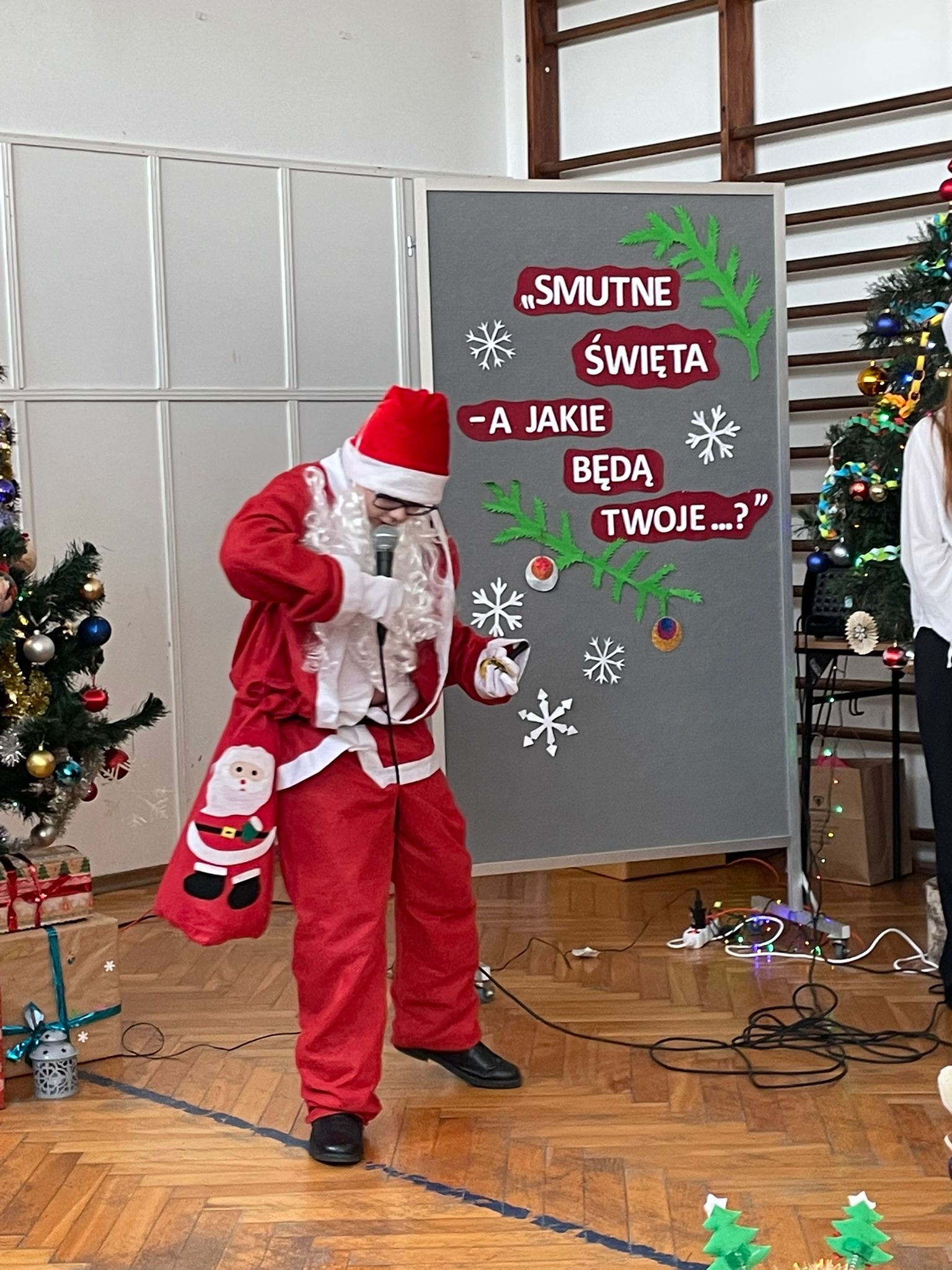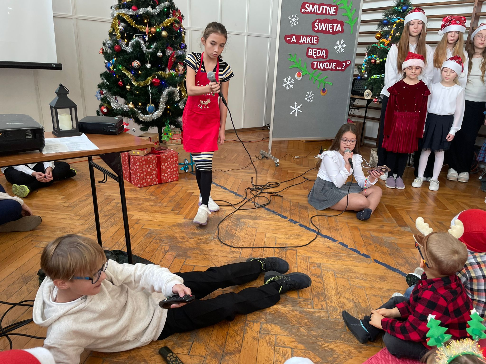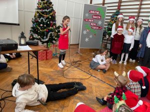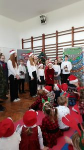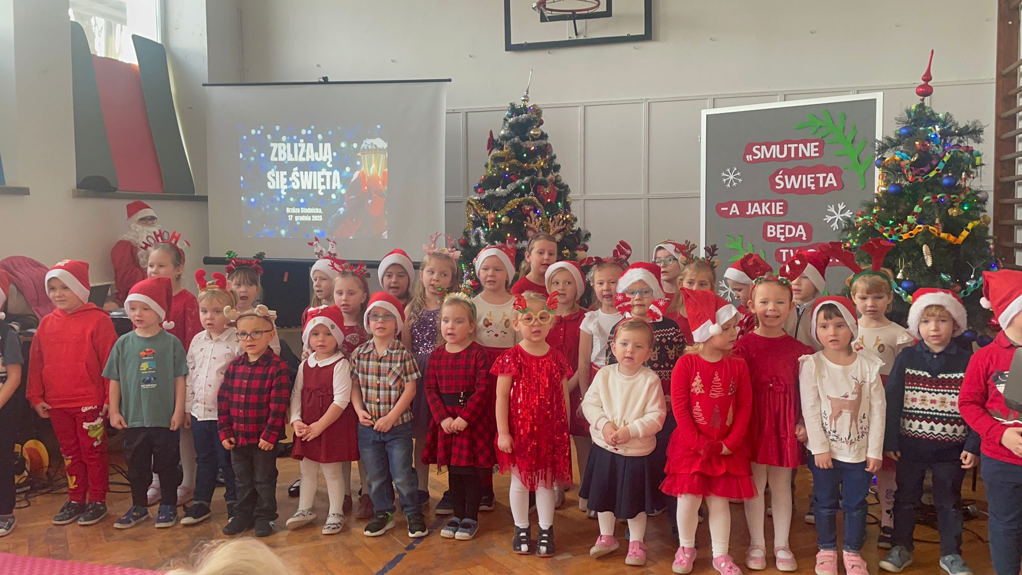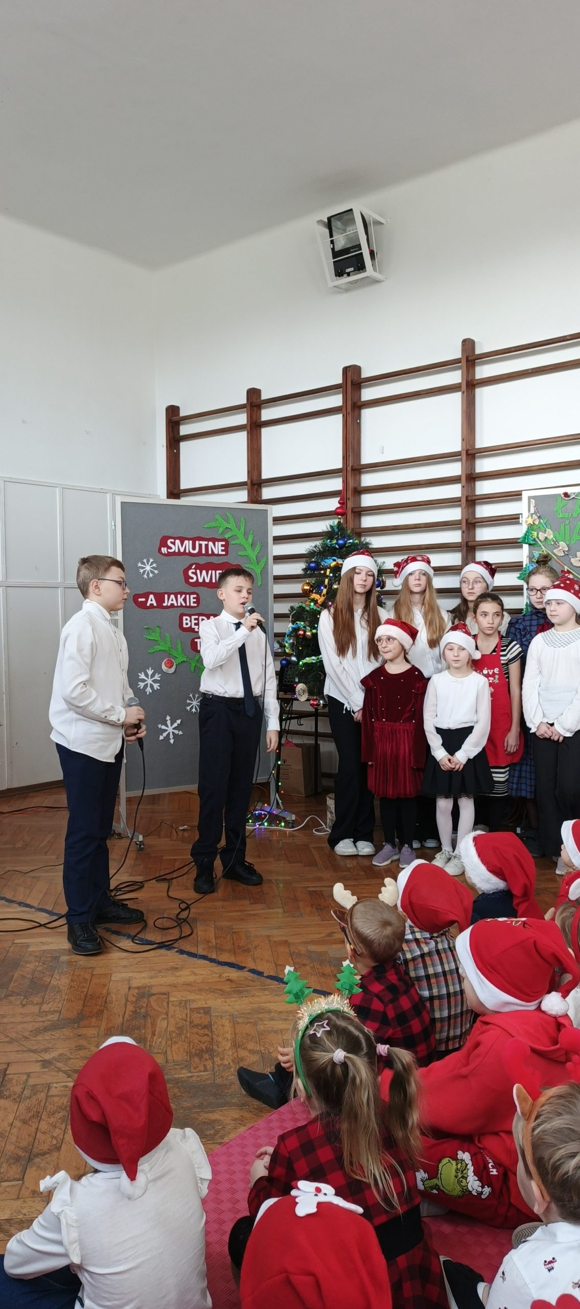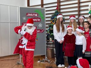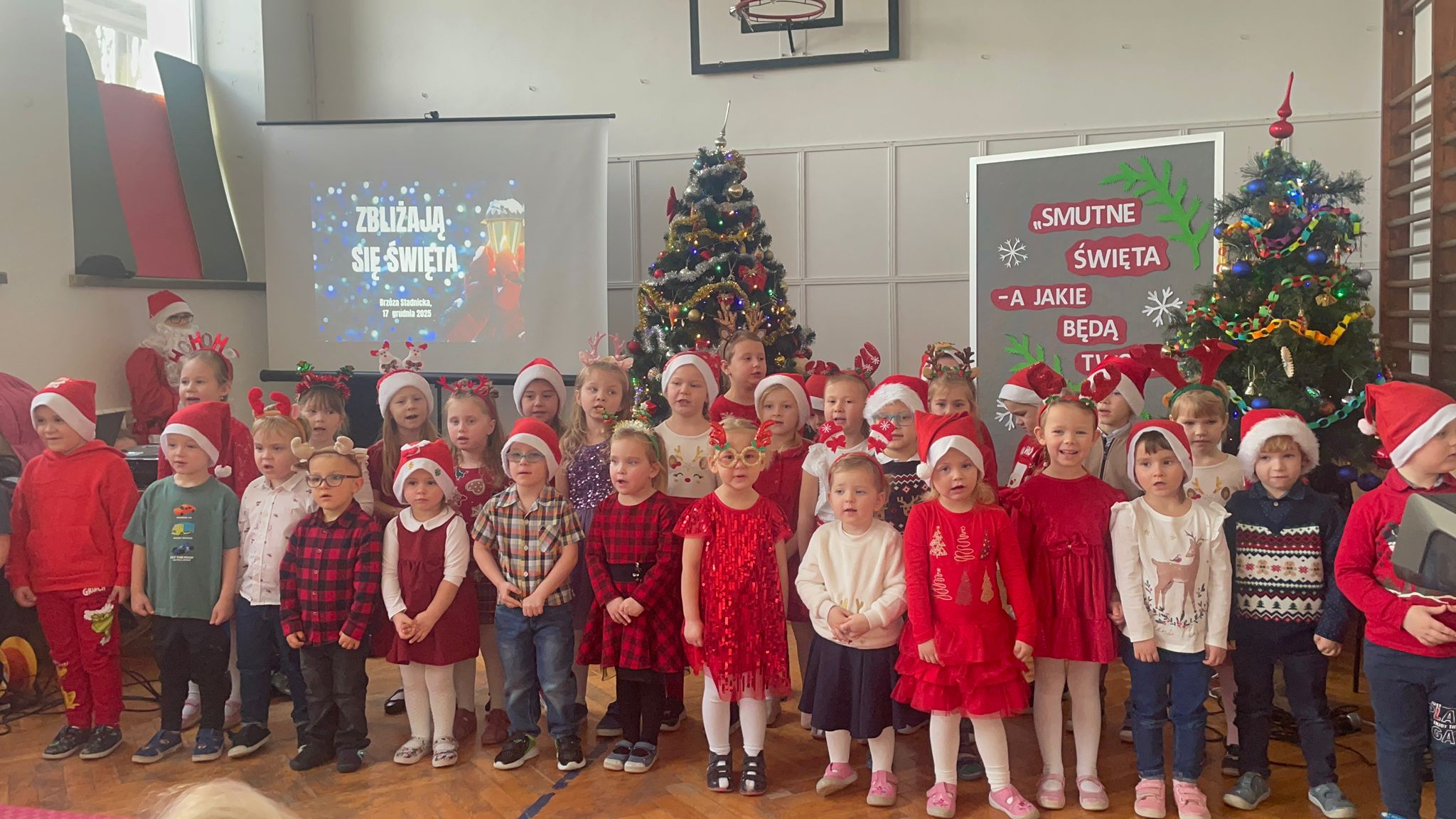 Spektakl pt. „Smutne święta” w wykonaniu piątoklasistów wprawił wszystkich w refleksyjny nastrój. Mieliśmy okazję uzmysłowić sobie sens bożonarodzeniowego świętowania oraz znaczenie życzliwości, dobroci i wspólnoty. Występ uświetniły piosenki bożonarodzeniowe i kolędy w wykonaniu uczniów oraz przedszkolaków.