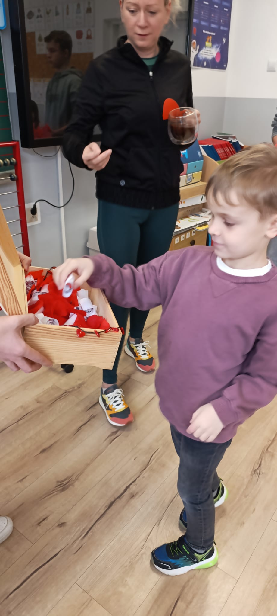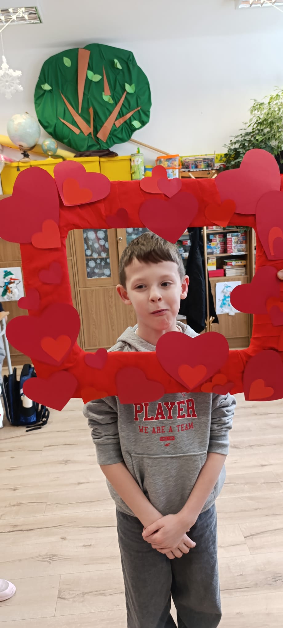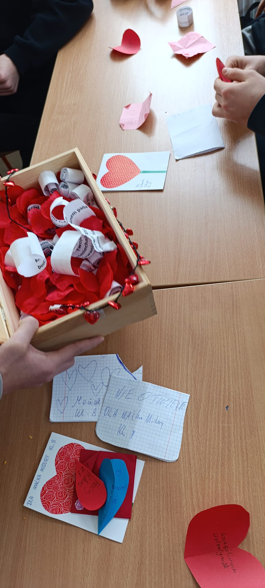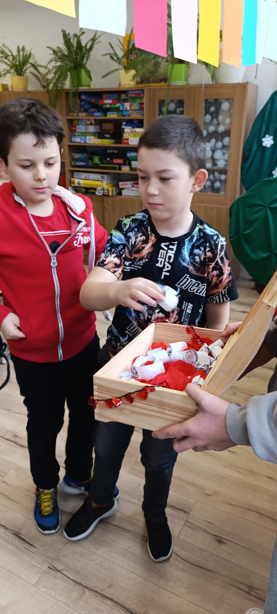 Dzięki naszemu Samorządowi Uczniowskiemu mieliśmy szansę okazać sympatię poprzez wysłanie kartki za pośrednictwem poczty walentynkowej. Wykonano również wypełnioną sercami fotoramkę, która stała się specjalnym elementem zdjęć z kolegami i koleżankami. Dodatkową atrakcją było walentynkowe wróżenie, podczas którego zarówno starsi uczniowie, jak i przedszkolaki mogli z przymrużeniem oka poznać imię swojej przyszłej sympatii lub przeczytać optymistyczną przepowiednię miłosną.