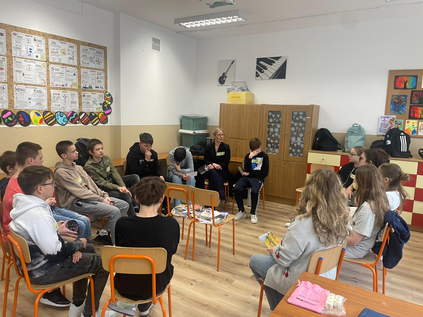 W ramach rozwijania kompetencji społecznych klasa szósta uczestniczyła dziś w warsztatach prowadzonych przez specjalistki z Poradni Psychologiczno-Pedagogicznej w Łańcucie: pedagog Bernadettę Szal oraz psycholog Izabelę Zańko. Uczniowie mieli okazję w praktyczny sposób doskonalić umiejętność współpracy i budowania wzajemnego zaufania. Kluczowym punktem zajęć były zadania problemowe, które uświadomiły młodzieży, jak istotny dla końcowego sukcesu jest wkład każdego członka grupy.